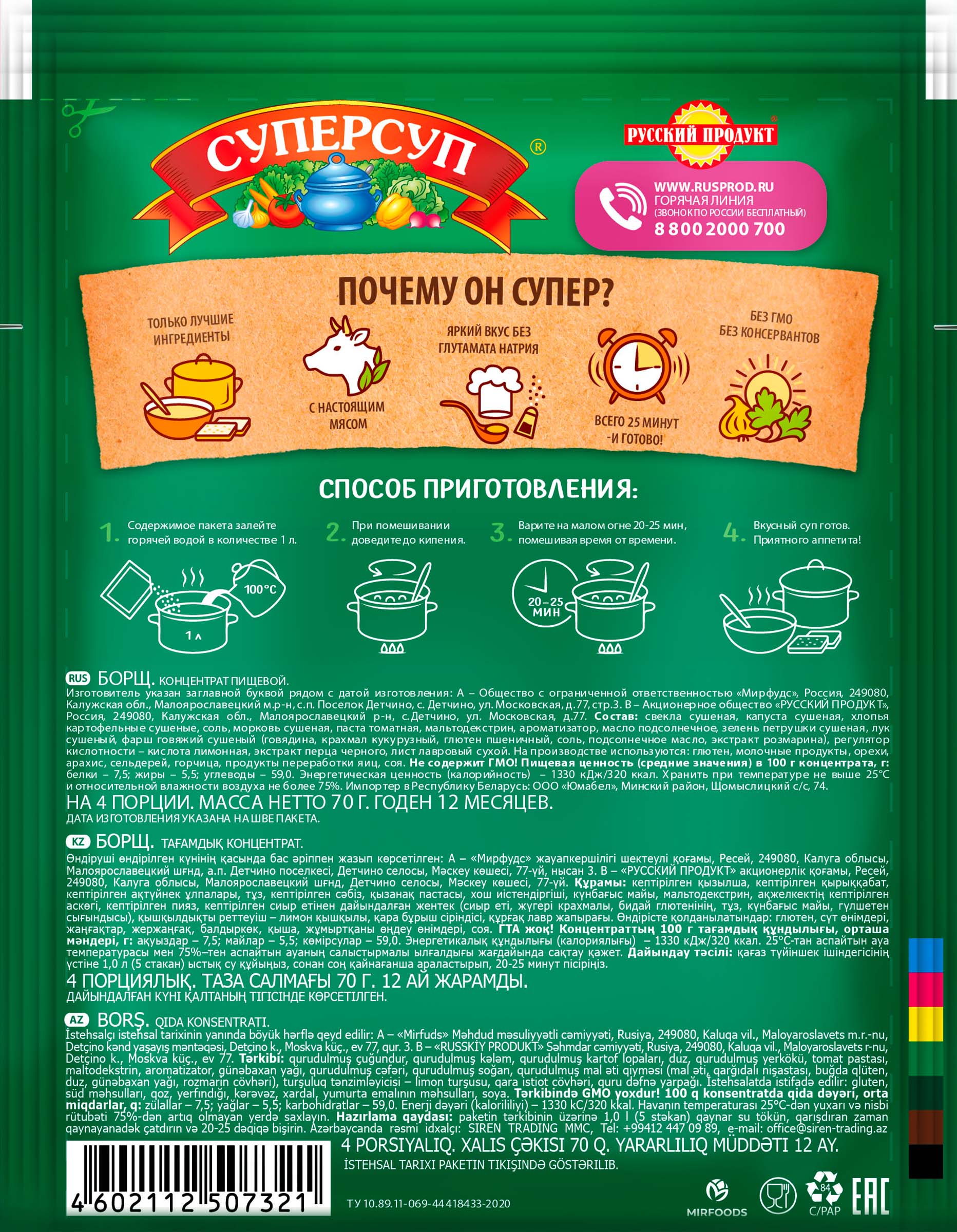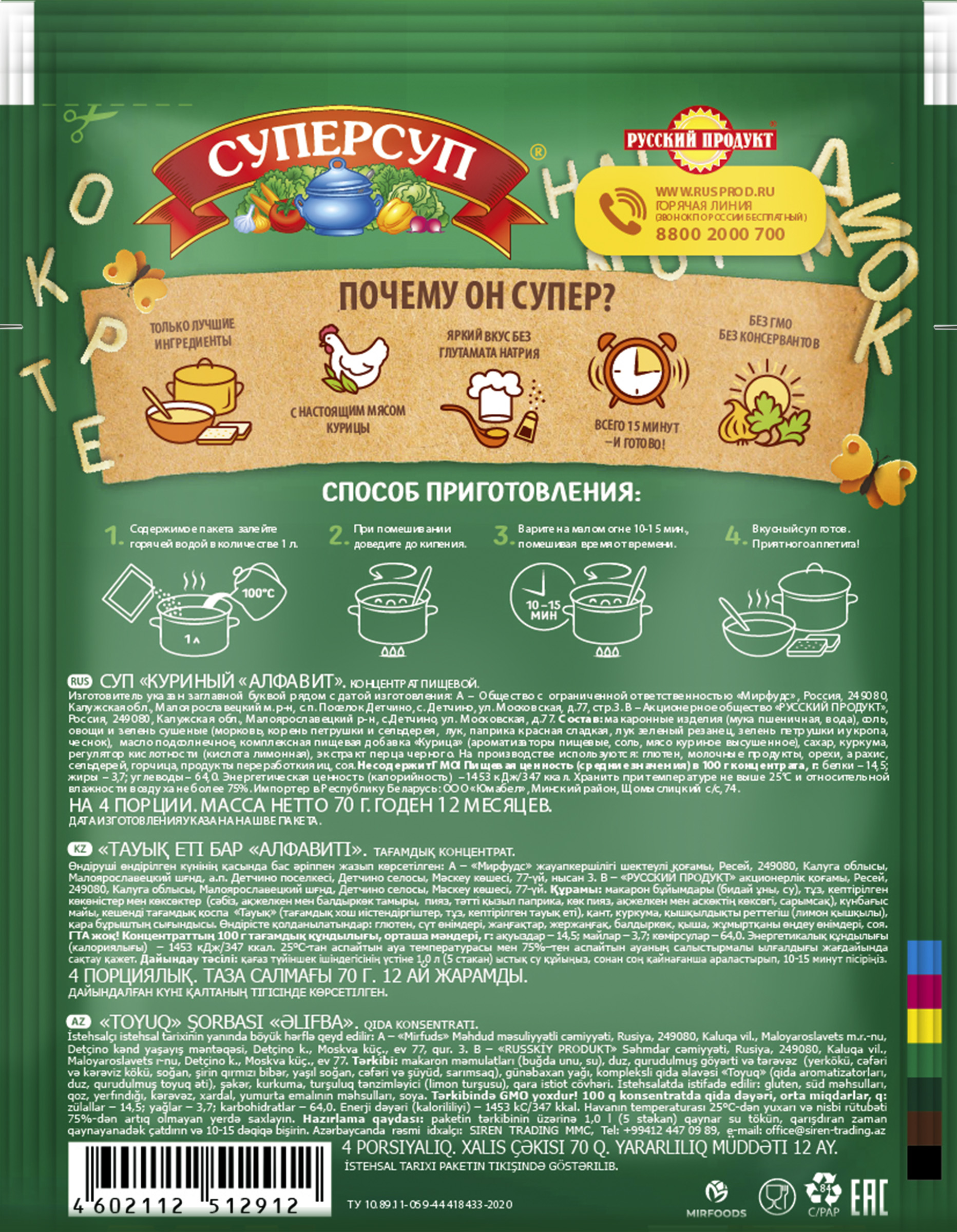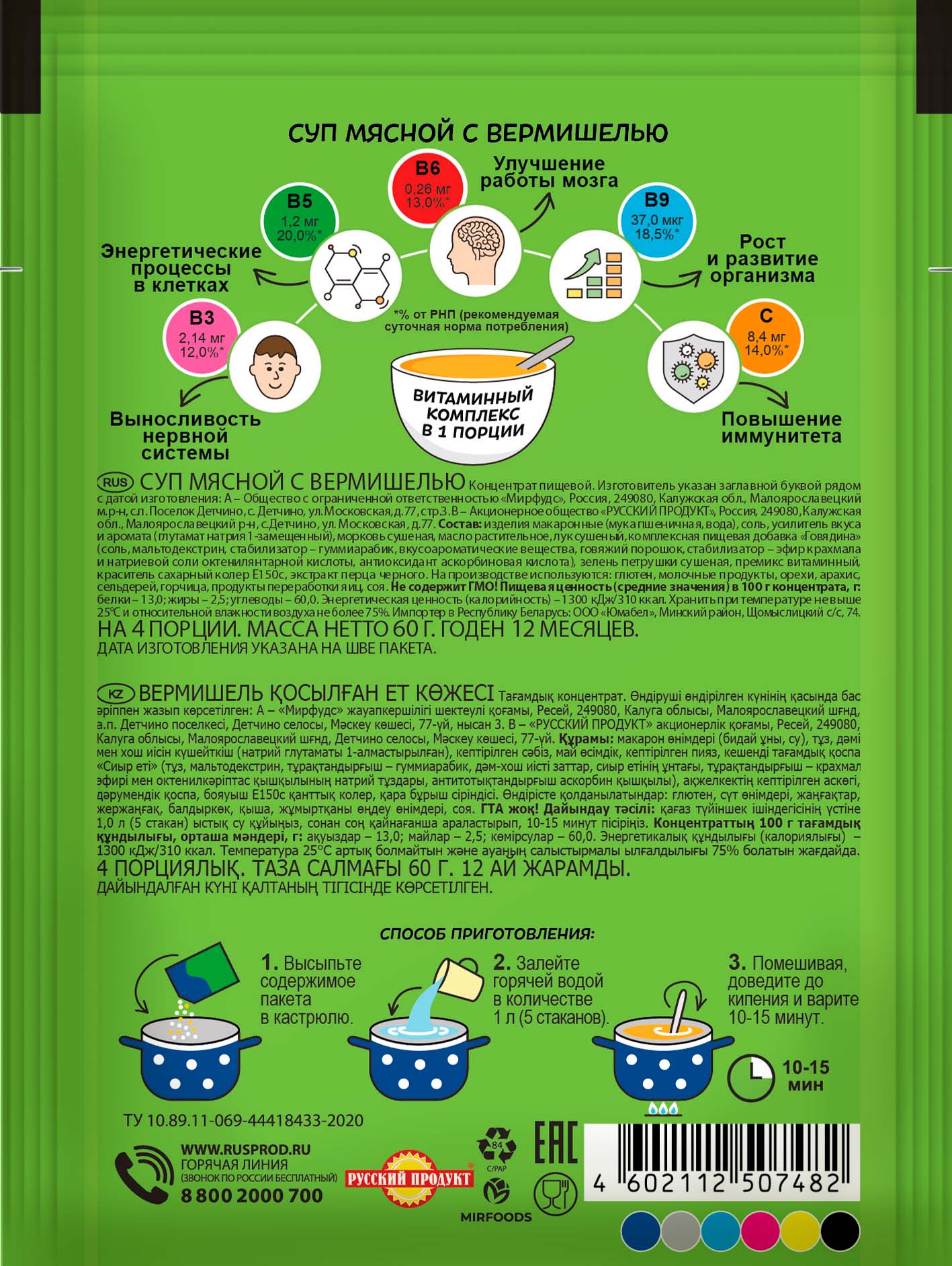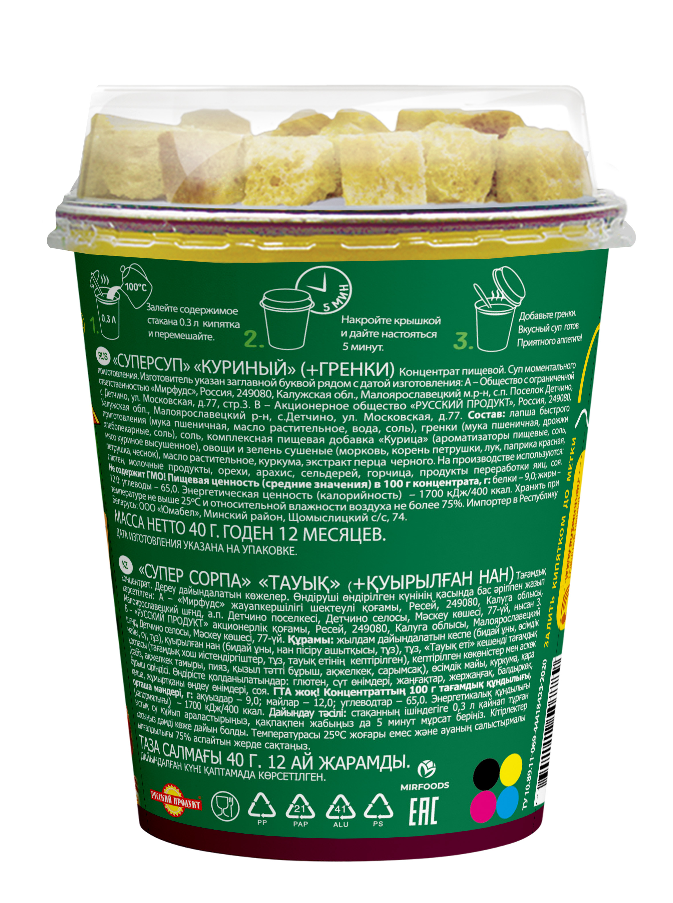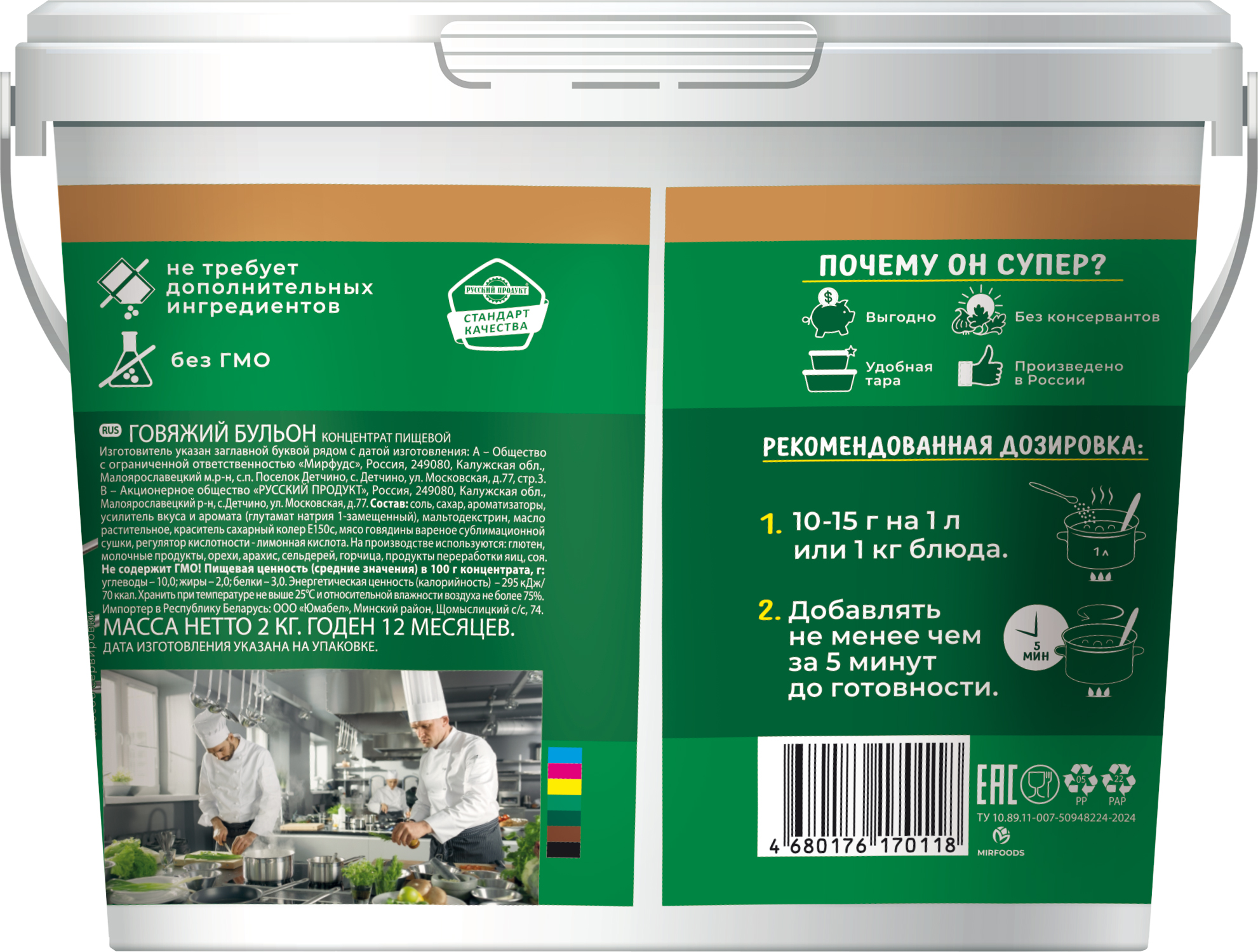 2. Добавьте не менее ... | соль, мальтодекстрин, усилитель вкуса и аромата (глутамат на... | 3D Лицевая Оборотная | 60.0 | 1.5 | 1.5 | 10 | 12 |  | Хранить при температуре не выше 25°С и относительной влажнос... | 4 | гофрокороб |  4602112513353 | 8 | 8,32 | 0,02 | 400 | 200 | 250 | Слой | 48 | 12 | 288 | 72 | 6 | 12 г/к х 6 слоев | 1650 | ООО Мирфудс | 249080, Россия, Калужская обл, Малоярославецкий р-н, Детчино... | ЕАЭС N RU Д-RU.РА03.В.39440/23 | 21.04.2023 - 20.04.2026 | соответствует требованиям ТУ 10.89.11-069-44418433-2020 | Скачать | 2104100000 | 10.89.11.130 |