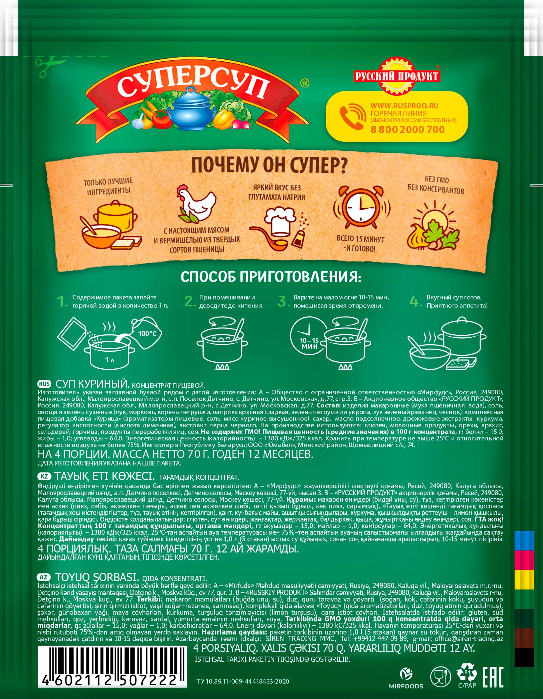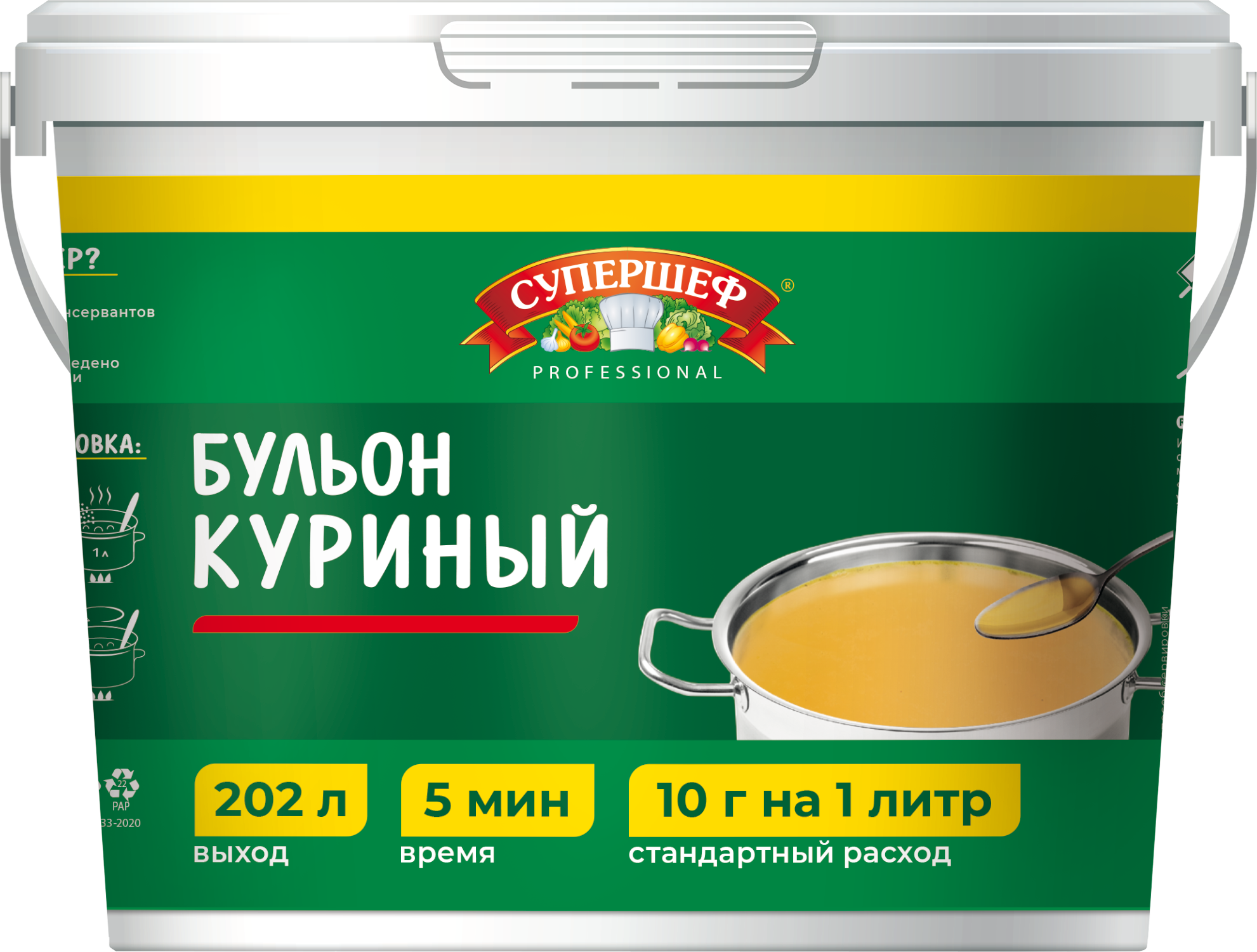 | Супершеф | HoReCa | Супы концентраты | Суп "Куриный бульон" 2000г/4 уп в кор | 2700028 | ведро |  4602112513346 | 2000 | 0,005 | 200 | 200 | 125 |  |  | 10 | Ваш профессиональный помощник: