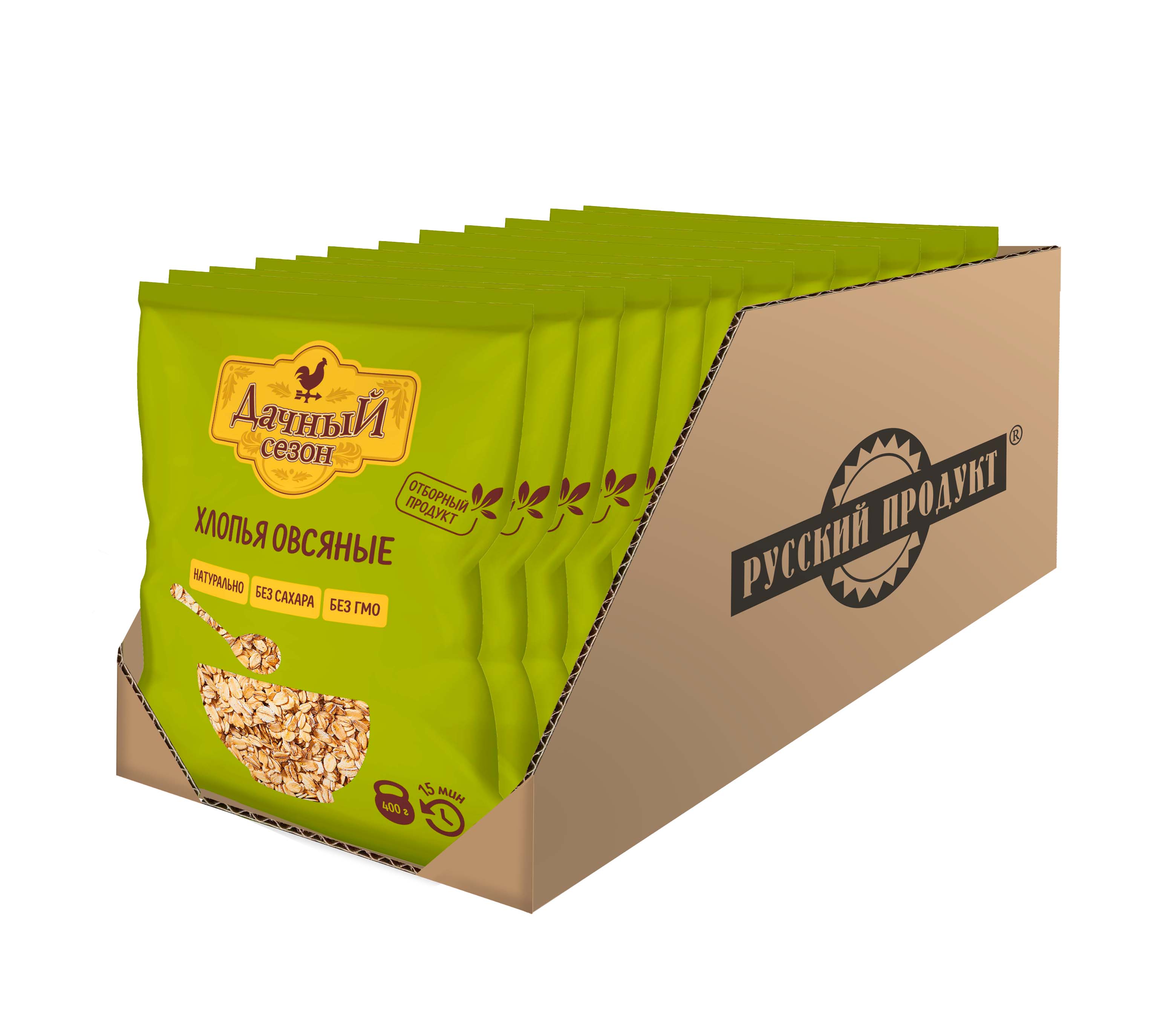 | Дачный Сезон | Бакалея | Каши варочные Хлопья овсяные/зерновые Дачный Сезон | Хлопья овсяные "Дачный сезон" 400г /12шт в кор (Мирфудс) | 2726569 | коробка |  4602112511632 | 400 | 0,00186 | 150 | 55 | 225 |  |  | 10 | Отборные овсяные хлопья быстрого приготовления "Дачный сезон... | 1. Залейте хлопья горячим молоком или водой в пропорции 1:3.... | Овсяные хлопья.