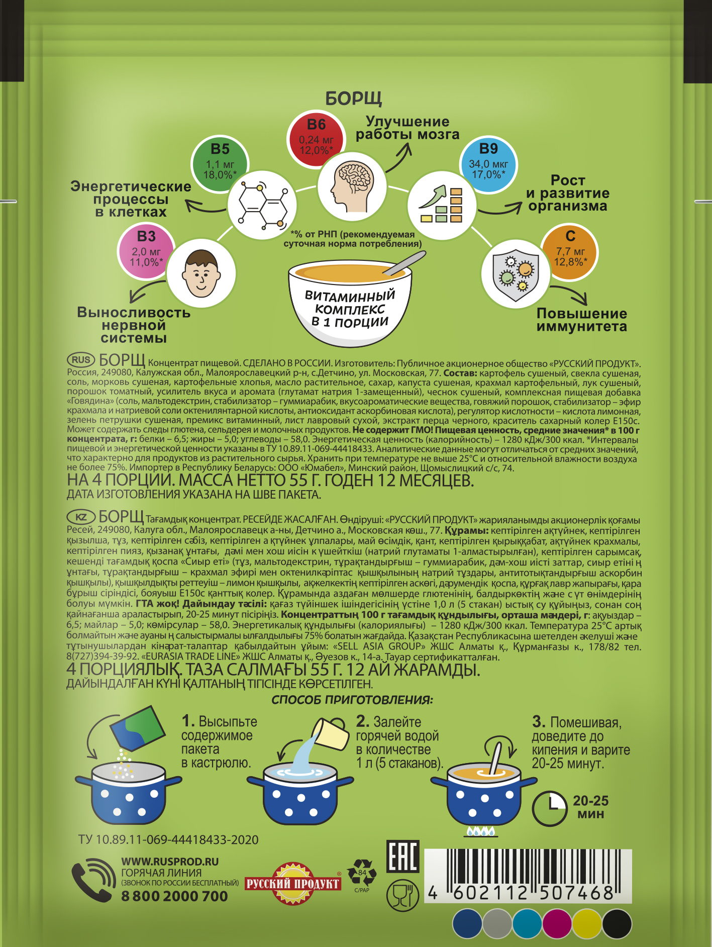 Н... | 3D Лицевая Оборотная Групповая уп |  |  |  |  | 24 |  | Хранить при температуре не выше 25°С и относительной влажнос... | 12 | гофрокороб |  4602112517948 | 1,02 | 1,29 | 0,01126 | 225 | 385 | 130 | Слой | 120 | 10 | 1440 | 120 | 12 | 10 г/к х 12 слоев | 1720 | АО Русский Продукт | 249080, Россия, Калужская обл, Малоярославецкий р-н, Детчино... | ЕАЭС N RU Д-RU.РА06.В.06675/24 | 15.07.2024 - 14.07.2027 | соответствует требованиям ТУ 10.83.12-055-44418433-2018 | Скачать | 2101309100 | 10.83.12.110 |
