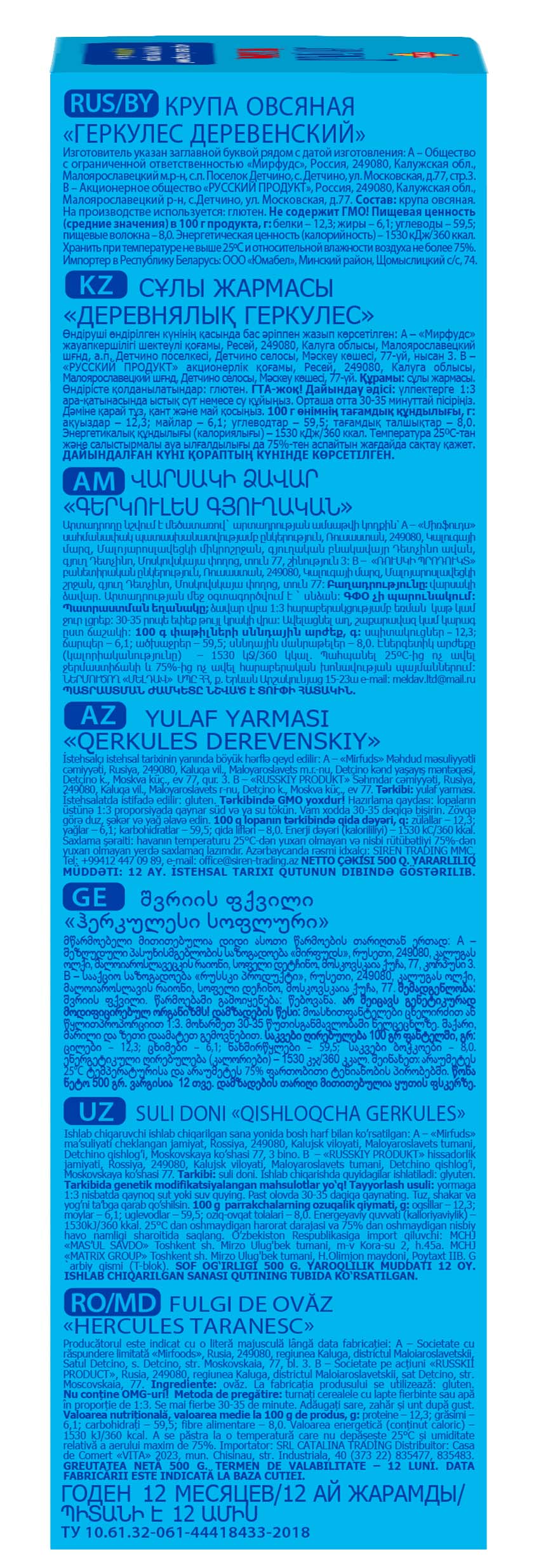 | Геркулес | Бакалея | Геркулес | Геркулес Деревенский 500 гр/1*7 шт в SRP ш/б /Крупа овсяная/... | 2726750 | Коробка |  4602112505549 | 500 | 0,00123 | 120 | 54 | 190 |  |  | 10 | Сколько хорошего может поместиться в одной ложке каши? Оказы... | Залейте крупу горячим молоком или водой в пропорции 1:3. Вар... | Крупа овсяная. | 3D Оборотная Боковая Л Боковая П Групповая уп | 360.0 | 12.3 | 6.1 | 59.5 | 12 |  | Хранить при температуре не выше 25°С и относительной влажнос... | 7 | шоу-бокс |  4602112505556 | 3,5 | 3,885 | 0,00999 | 130 | 396 | 194 | Паллета | 126 | 18 | 1008 | 144 | 8 | 18 ш/б х 8 слоев | 1710 | ООО Мирфудс | 249080, Россия, Калужская обл, Малоярославецкий р-н, Детчино... | ЕАЭС N RU Д-RU.РА06.В.93022/25 | 11.08.2025 - 10.08.2030 | соответствует требованиям ТУ 10.61.32-061-44418433-2018 | Скачать | 1103194000 | 10.61.32.110 |