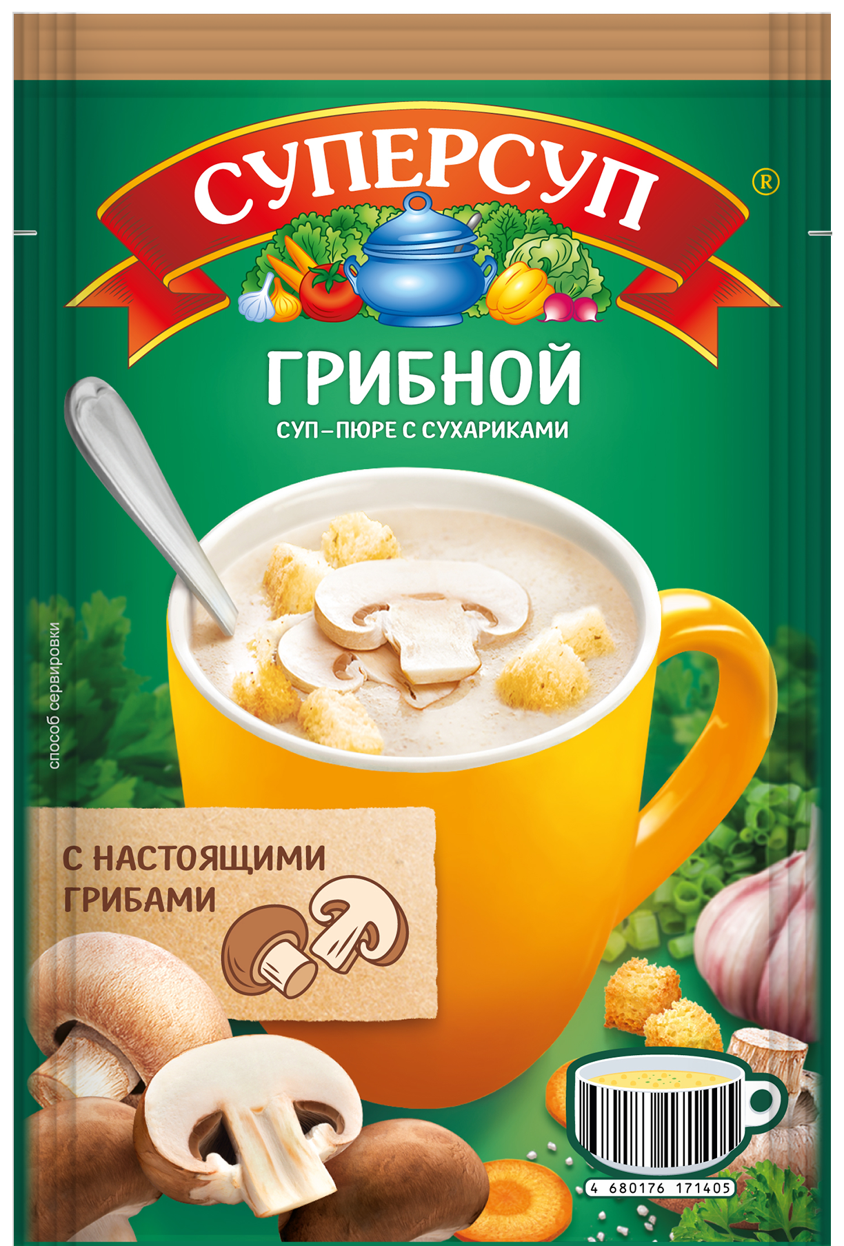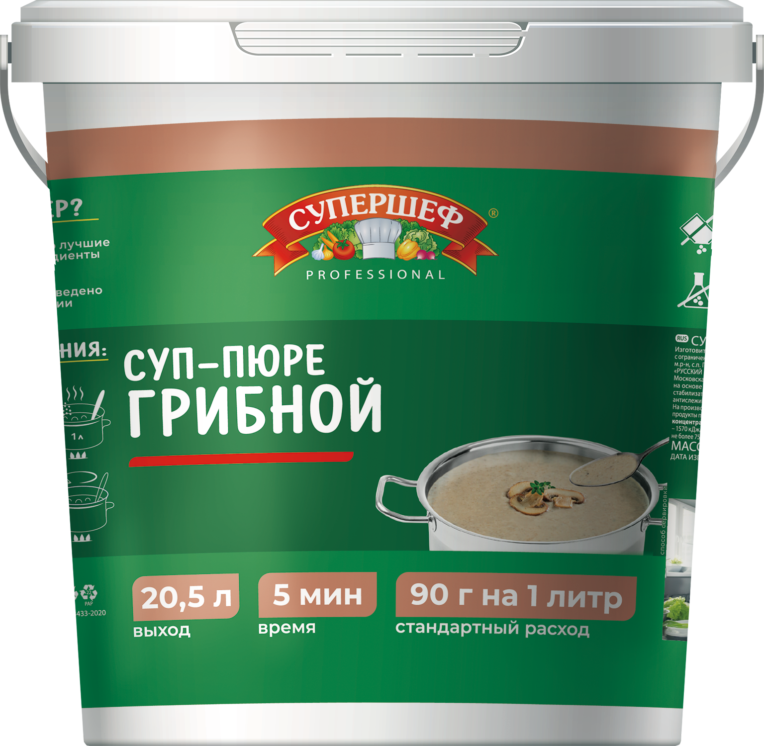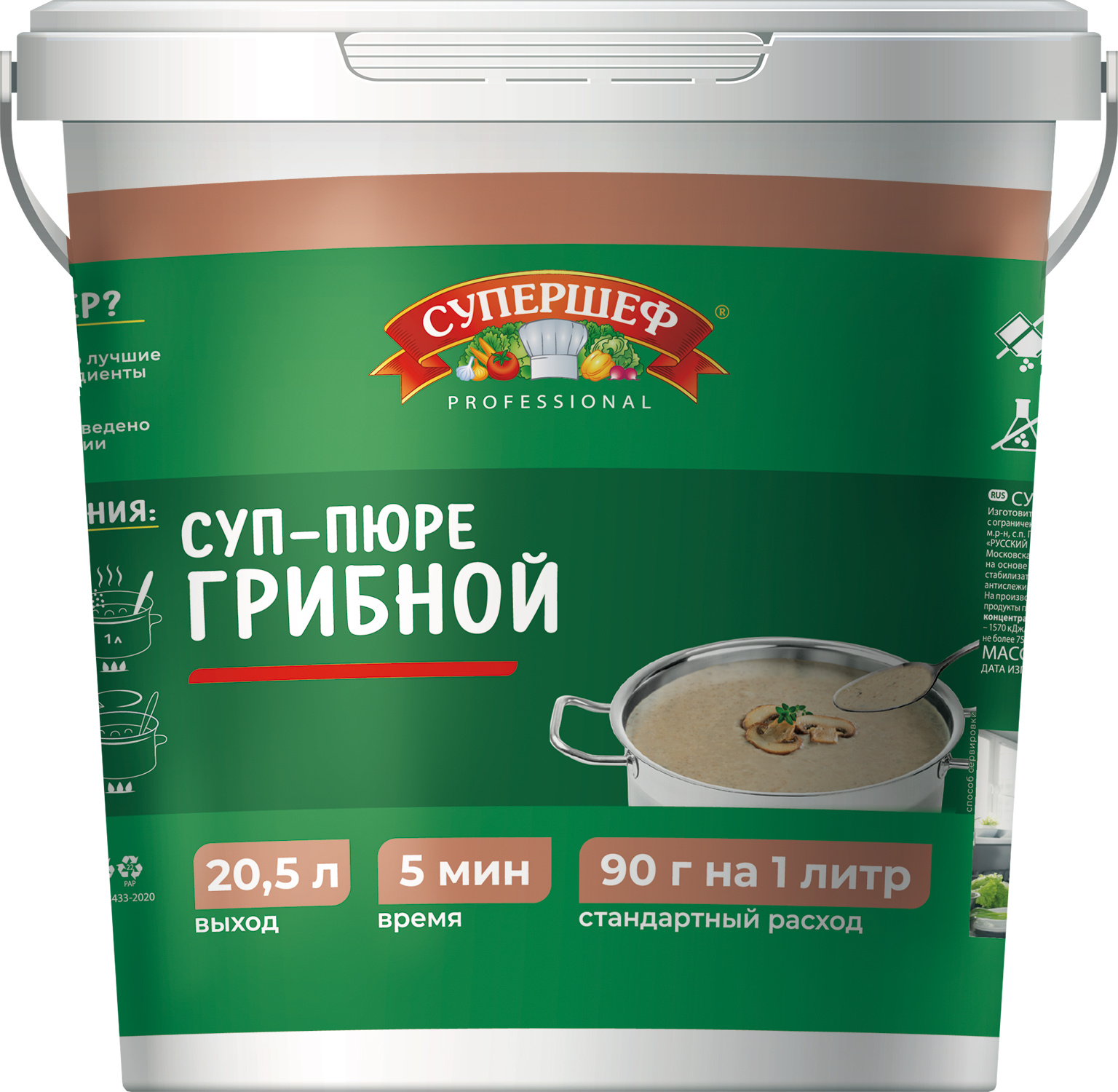| Супершеф | HoReCa | Супы концентраты | Суп-пюре "Грибной" 1700г/4 уп в кор | 2700029 | ведро |  4602112513360 | 1700 | 0,007 | 200 | 200 | 175 |  |  | 10 | Ваш профессиональный помощник: