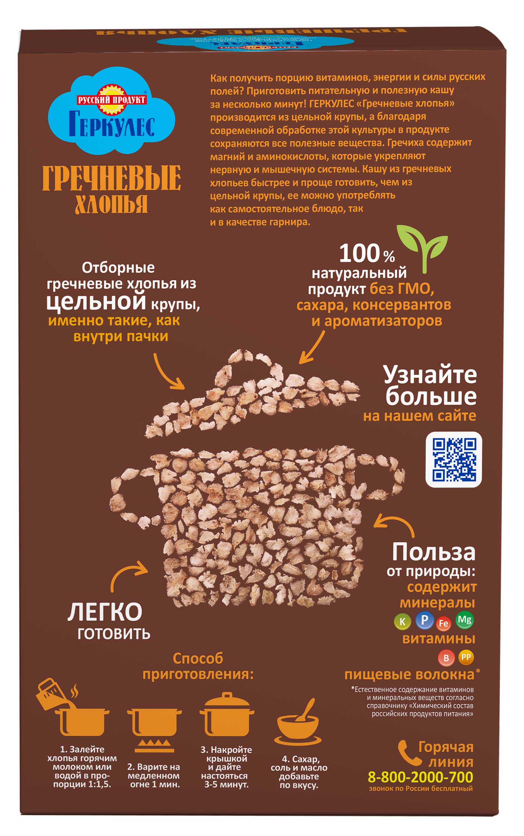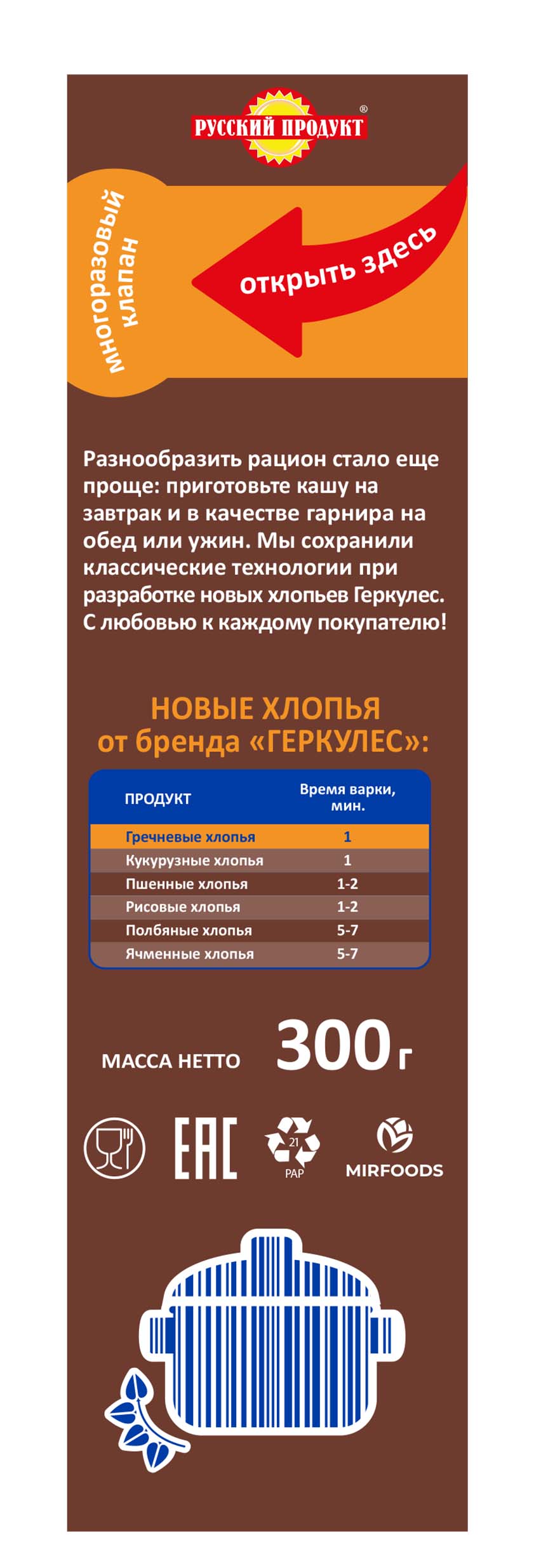 | Геркулес | Бакалея | Геркулес | Геркулес Хлопья Гречневые 300г/1*7 шт в SRP ш/б (Мирфудс) | 2726743 | Коробка |  4602112510024 | 300 | 0,00123 | 120 | 54 | 190 |  |  | 10 | Геркулес "Гречневые хлопья" производится из цельной крупы, а... | Залейте хлопья горячим молоком или водой в пропорции 1:1,5. ... | Хлопья гречневые. | 3D Оборотная Боковая Л Боковая П Групповая уп | 330.0 | 13 | 3.5 | 62 | 12 |  | Хранить при температуре не выше 25°С и относительной влажнос... | 7 | шоу-бокс |  4602112510031 | 2,1 | 2,485 | 0,00978 | 130 | 396 | 190 | Слой | 126 | 18 | 1008 | 144 | 8 | 18 ш/б х 8 слоев | 1710 | ООО Мирфудс | 249080, Россия, Калужская обл, Малоярославецкий р-н, Детчино... | ЕАЭС N RU Д-RU.РА06.В.95069/25 | 11.08.2025 - 10.08.2030 | соответствует требованиям ТУ 10.61.33-016-44418433-2018 | Скачать | 1104199900 | 10.61.33.110 |