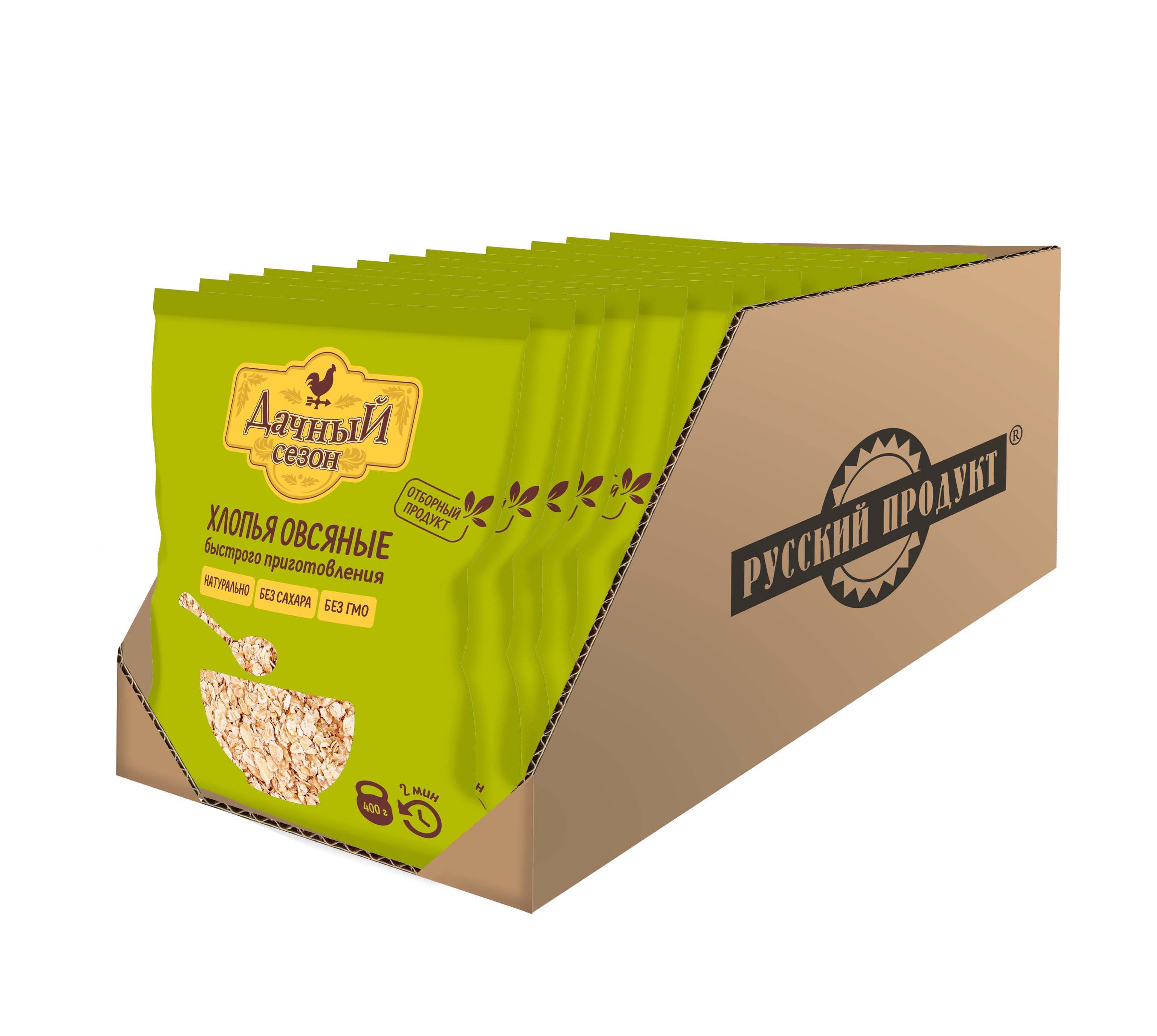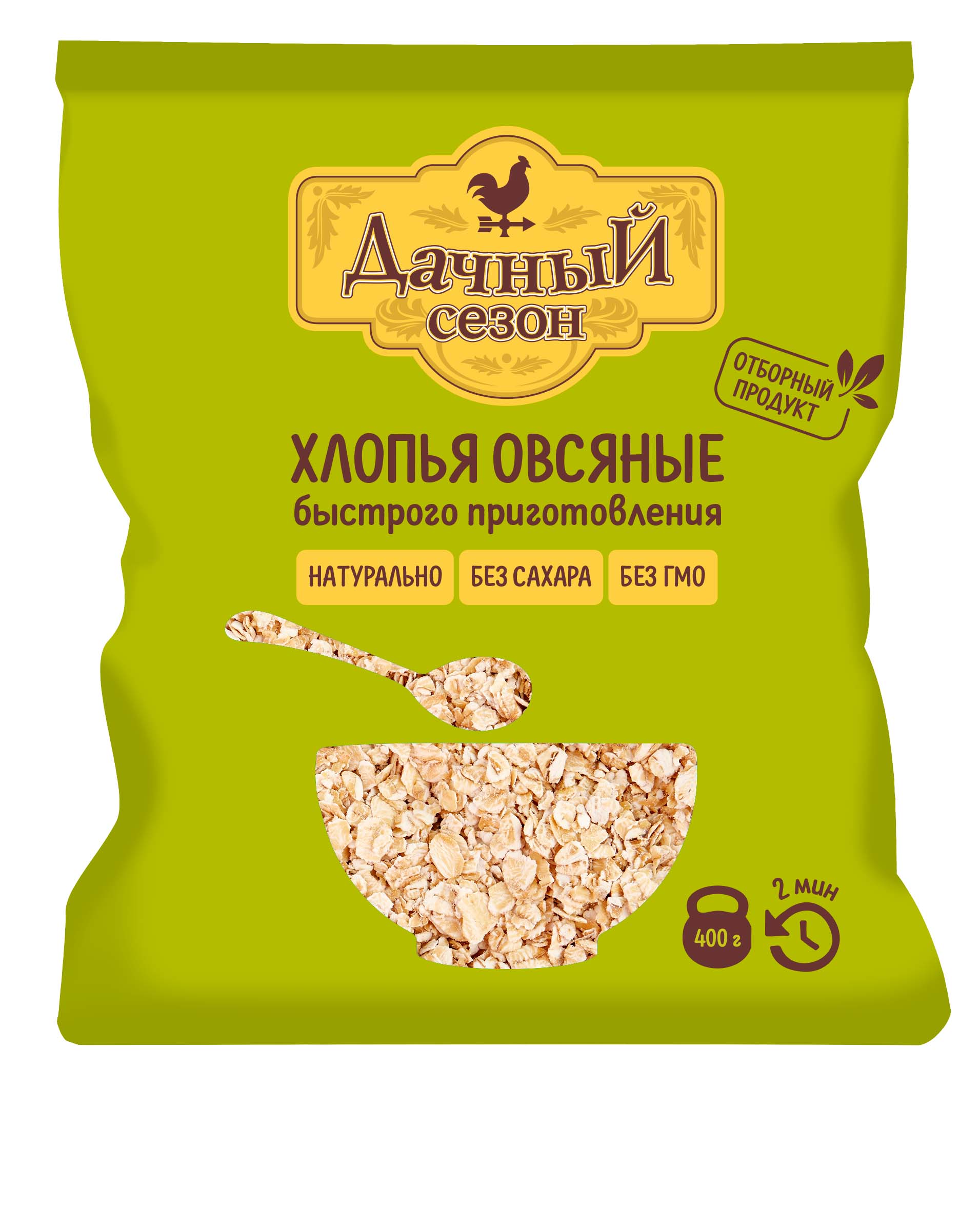 | Дачный Сезон | Бакалея | Каши варочные Хлопья овсяные/зерновые Дачный Сезон | Хлопья овсяные быстрого приготовления "Дачный сезон" 400г /1... | 2726568 | коробка |  4602112511618 | 400 | 0,00186 | 150 | 55 | 225 |  |  | 10 | Отличный выбор для тех, кто ценит свое время и хочет правиль... | 1. Залейте хлопья горячим молоком или водой в пропорции 1:2.... | Овсяные хлопья.