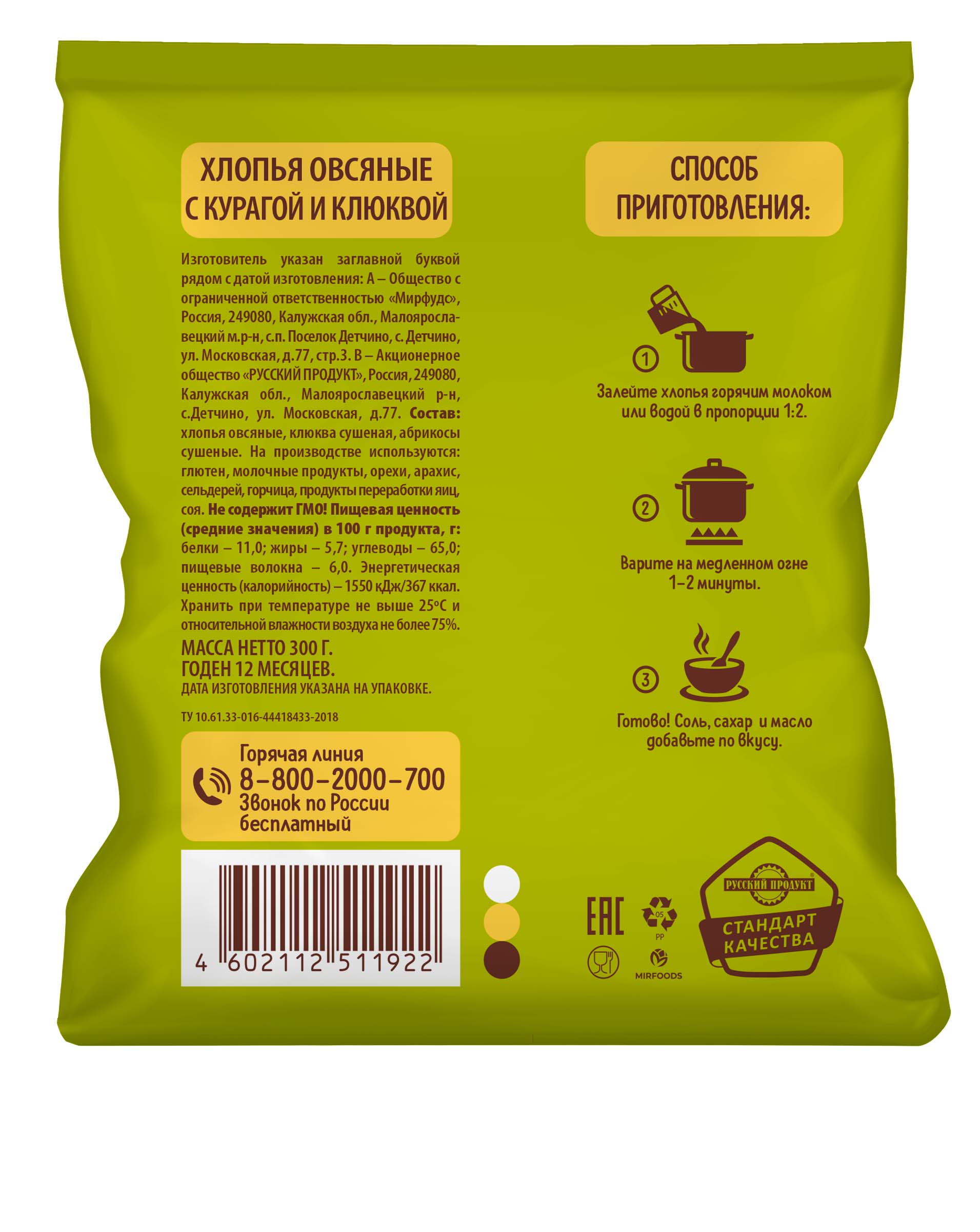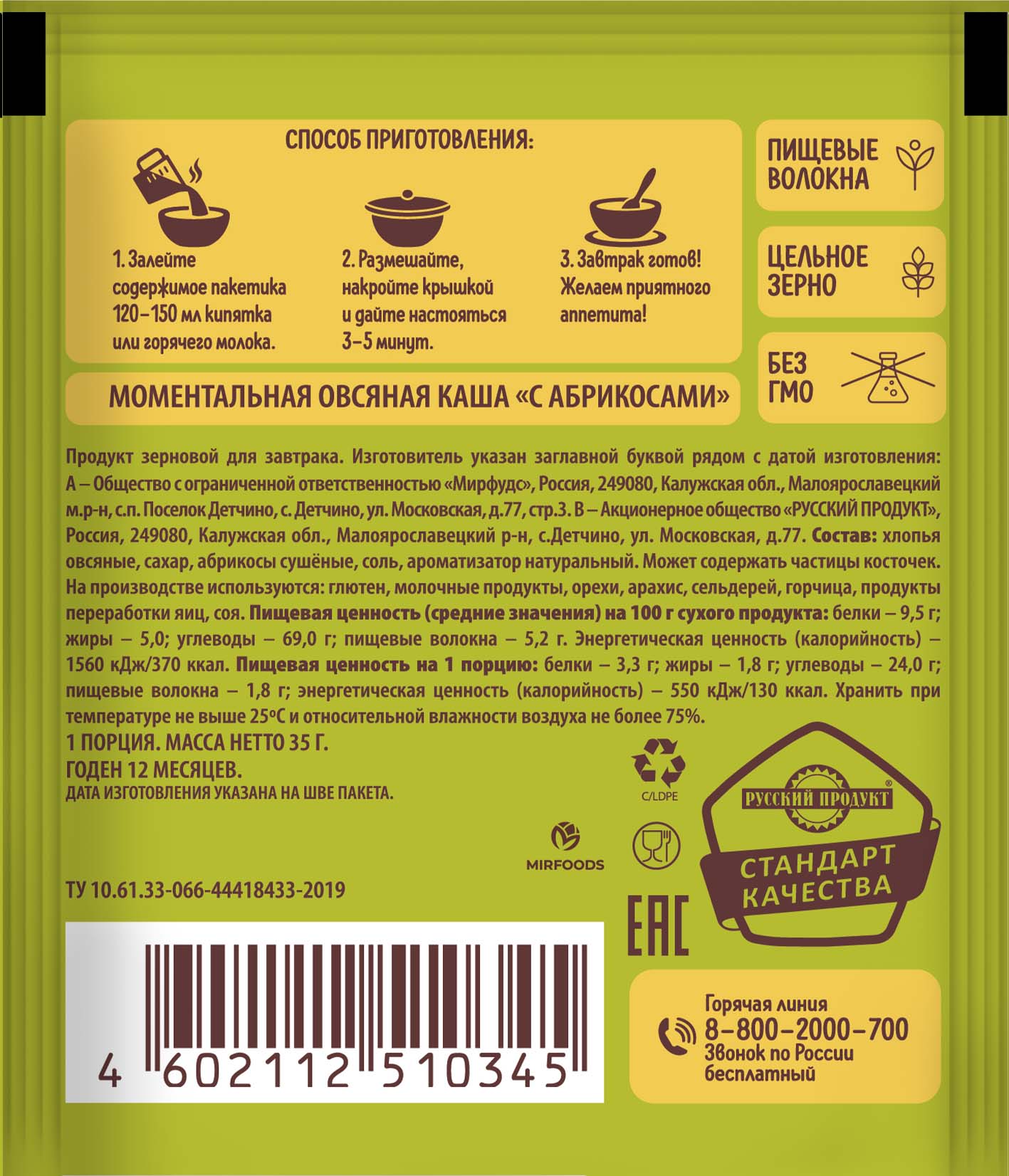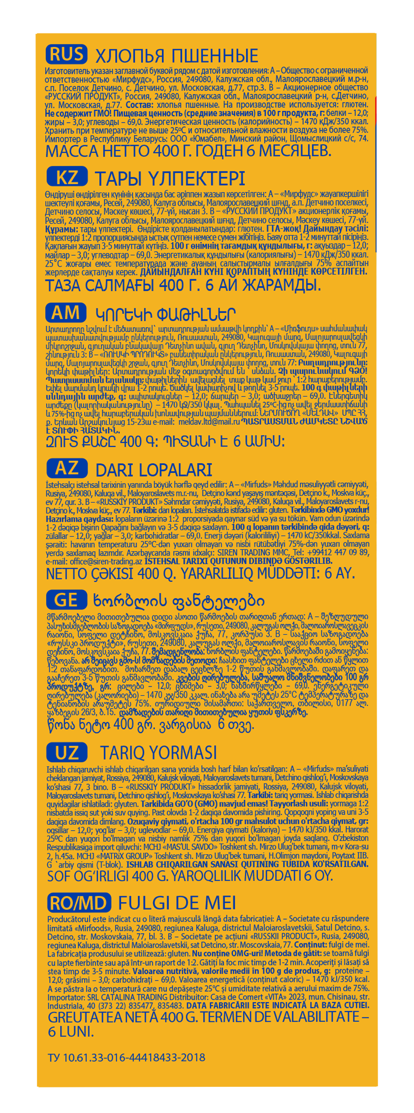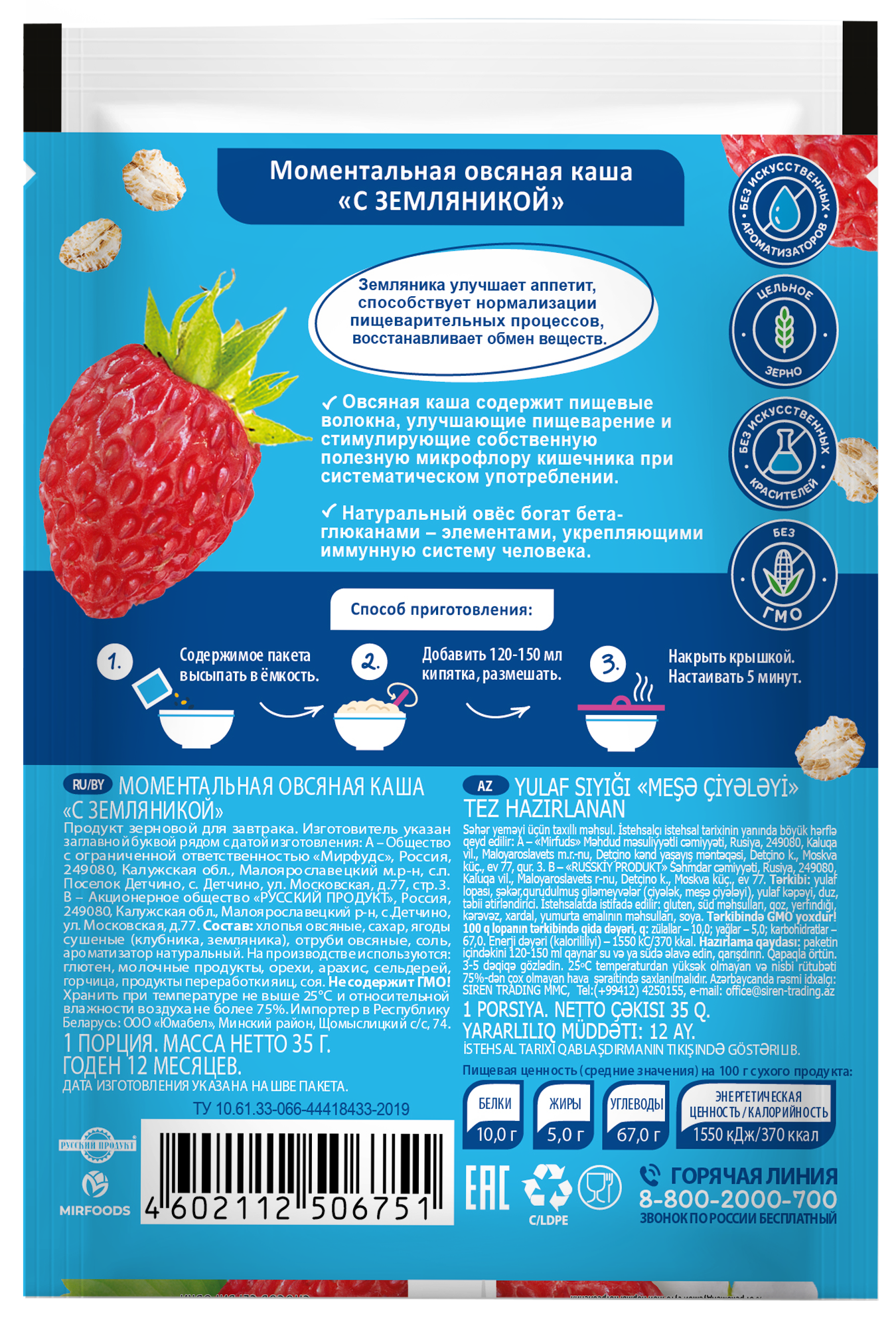 Состав: хлопья овсяные, мин... | Лицевая Оборотная |  |  |  |  | 12 |  | Хранить при температуре не выше 25°С и относительной влажнос... | 8 | шоу-бокс |  4602112514558 | 1,68 | 2,33 | 0,01155 | 148 | 396 | 197 | Слой | 128 | 16 | 1024 | 128 | 8 | 16 ш/б х 8 слоев | 1736 | ООО Мирфудс | 249080, Россия, Калужская обл, Малоярославецкий р-н, Детчино... | ЕАЭС N RU Д-RU.РА08.В.92359/23 | 20.10.2023 - 19.10.2026 | соответствует требованиям ТУ 10.61.33-066-44418433-2019 | Скачать | 1904908000 | 10.61.33.110 |