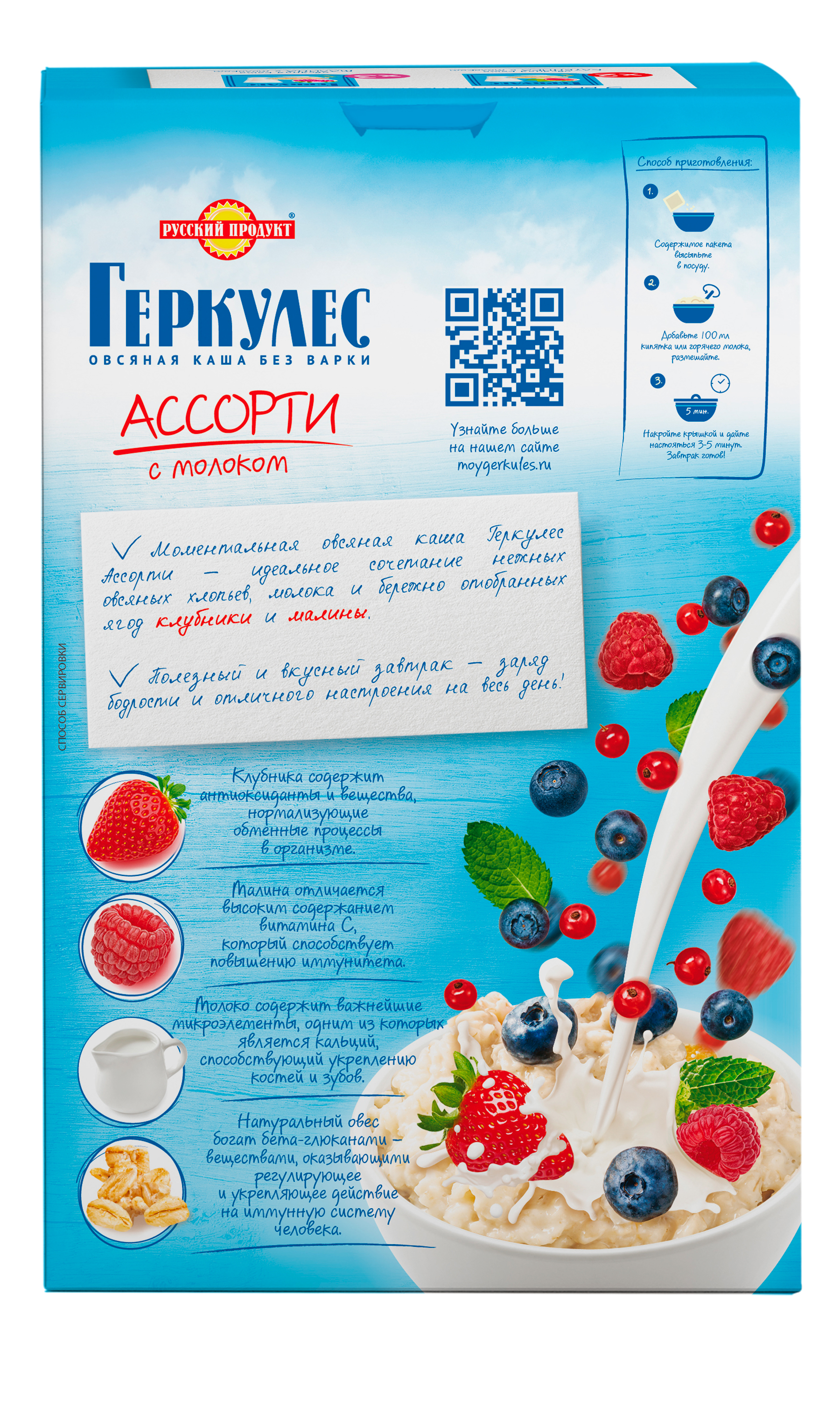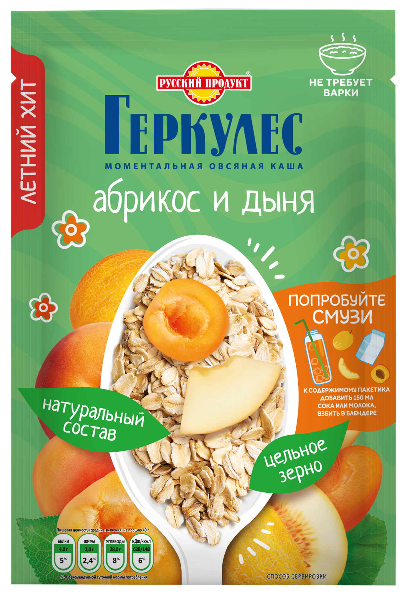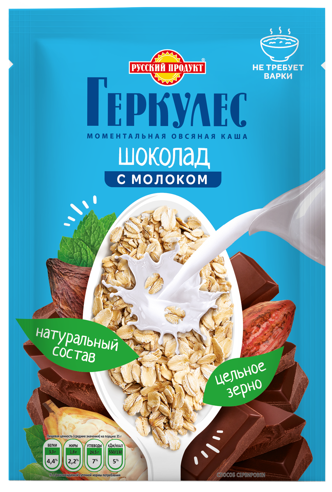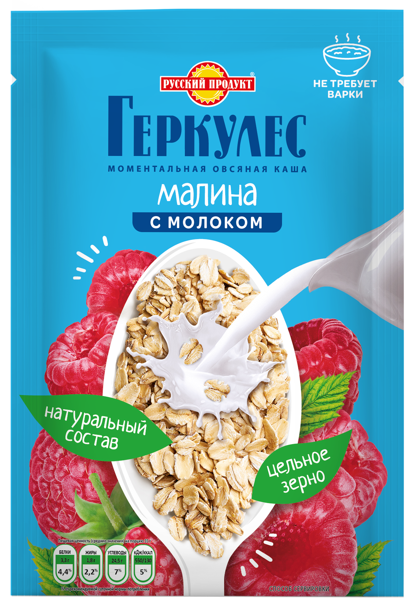 | Геркулес | Бакалея | Каши моментальные Геркулес | Овсяная каша момент Геркулес "Яблочная шарлотка" 40г/30 уп в... | 2700502 | пакет |  4680176172730 | 40 | 0,00019 | 100 | 13 | 145 | 09.10.2025 |  | 10 |  | 1. Содержимое пакета высыпать в ёмкость.