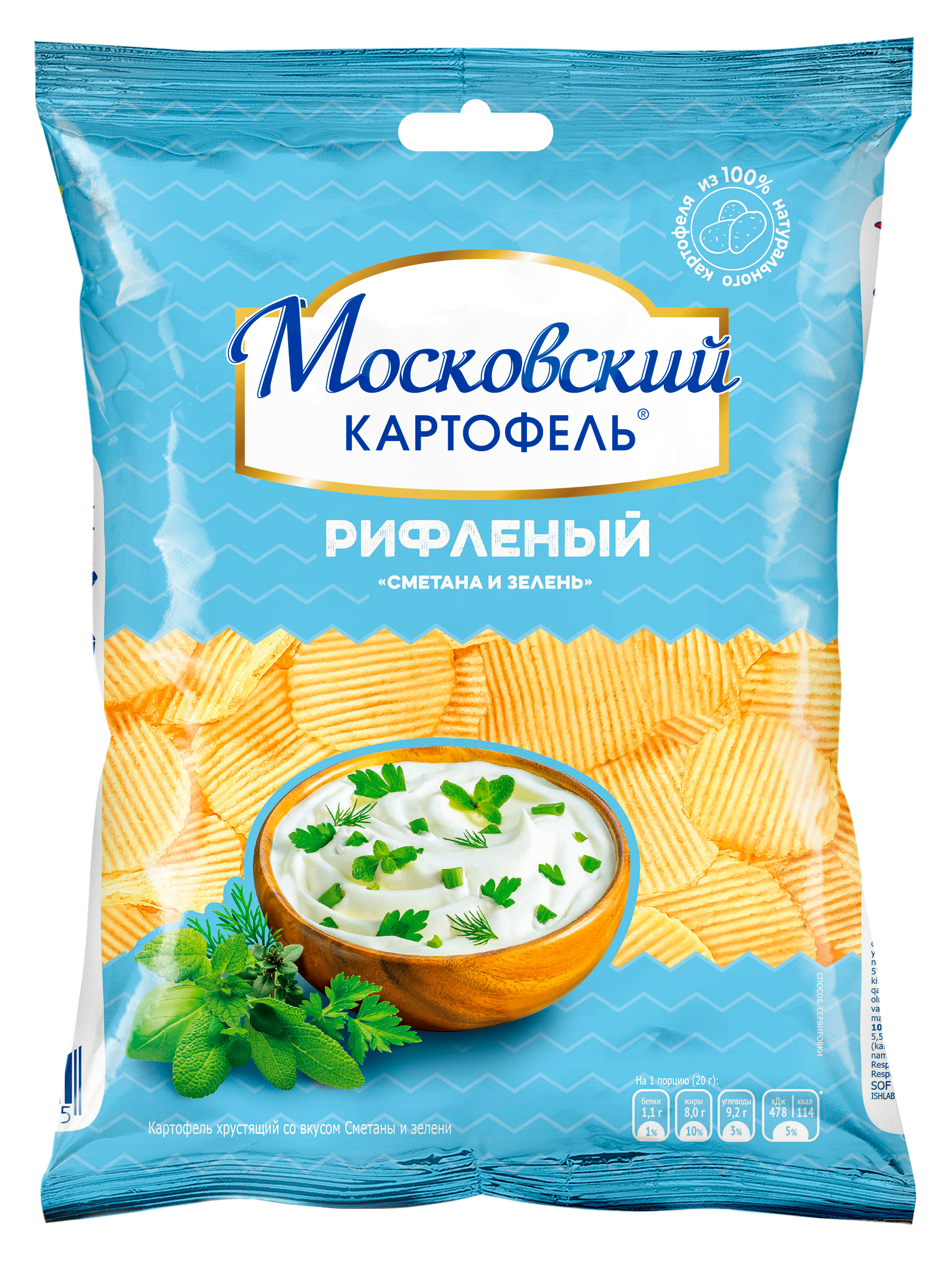 | Московский Картофель | Снеки | Московский картофель: Большая фасовка. Рифленые | Картофель Московский хруст. рифл со вкусом сметаны и зелени ... | 2601975 | Пакет-подушка |  4602112515661 | 120 | 0,00553 | 205 | 90 | 300 |  |  | 20 | Всегда актуальная классика: поджаренный золотистый картофель... | Готовый продукт.