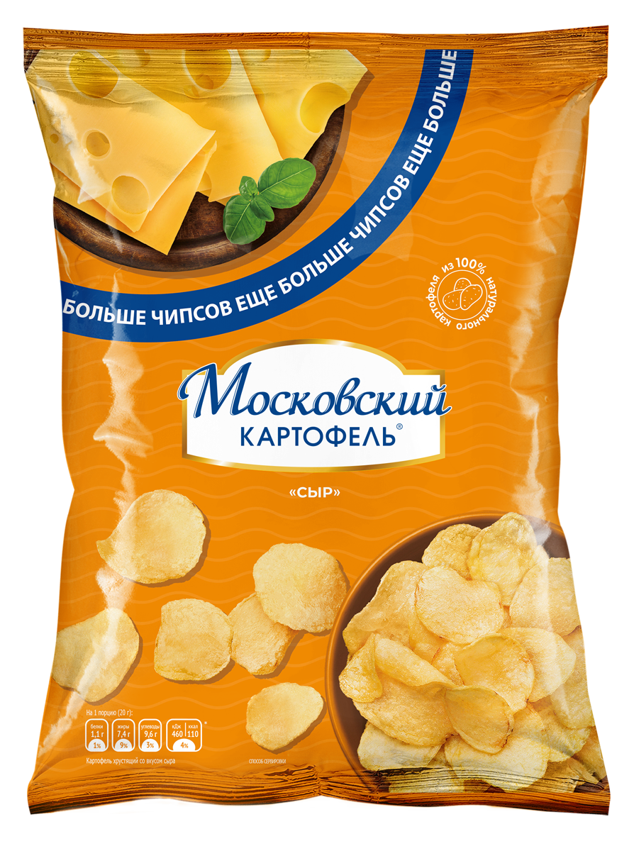 | Московский Картофель | Снеки | Московский картофель: Большая фасовка | Картофель Московский хруст. со вкусом cыра 120г/16 уп в кор ... | 2601984 | Пакет-подушка |  4602112515647 | 120 | 0,00553 | 205 | 90 | 300 |  |  | 20 | Хрустящий картофель с насыщенным вкусом сыра - классика, ник... | Готовый продукт.