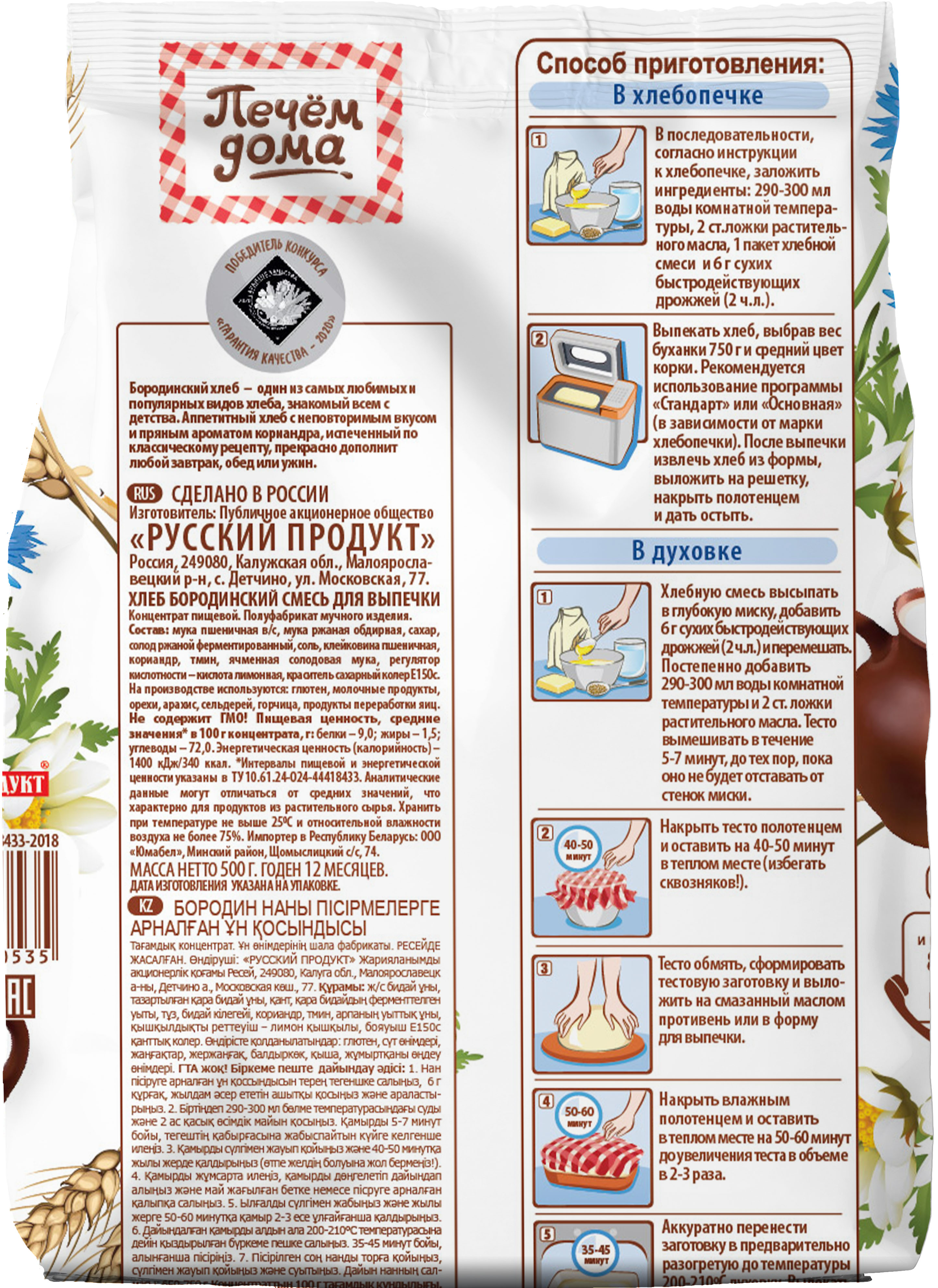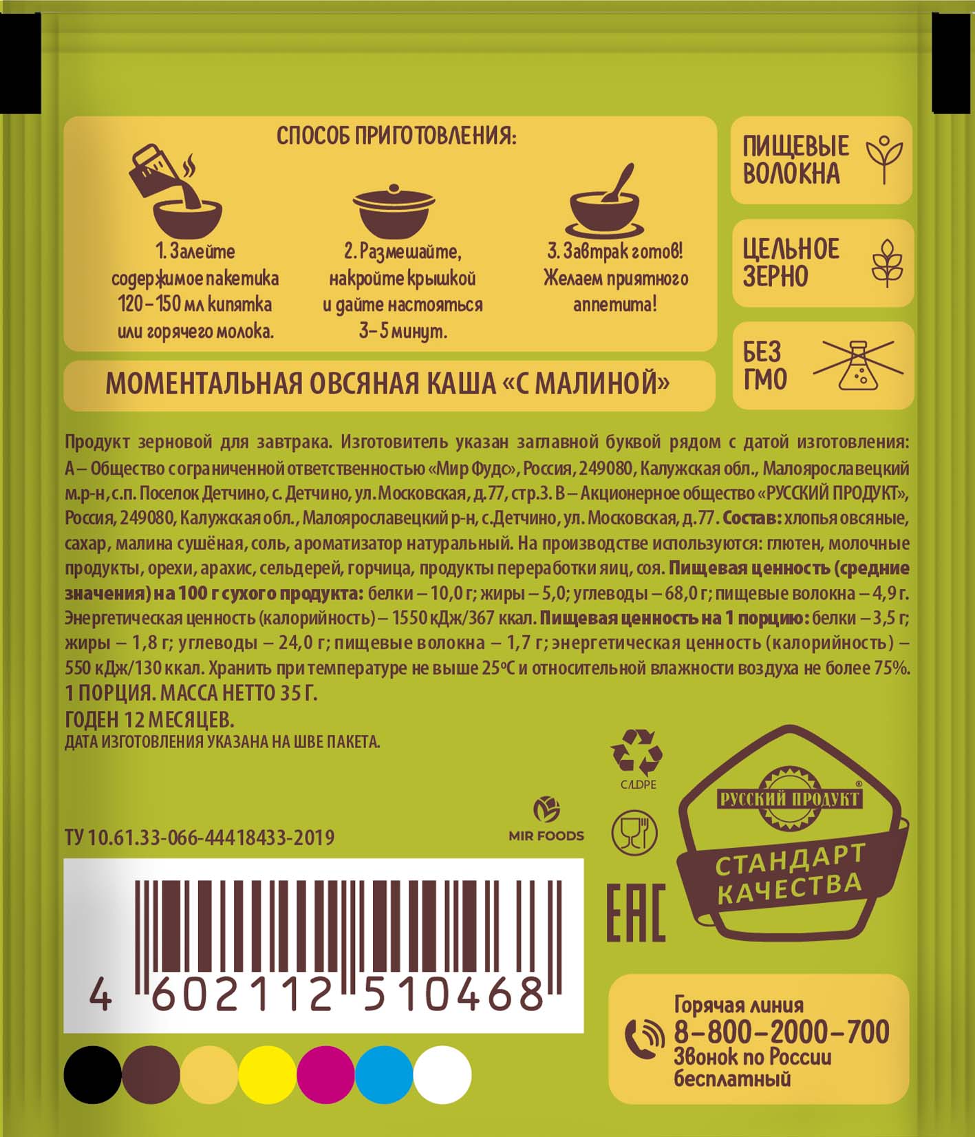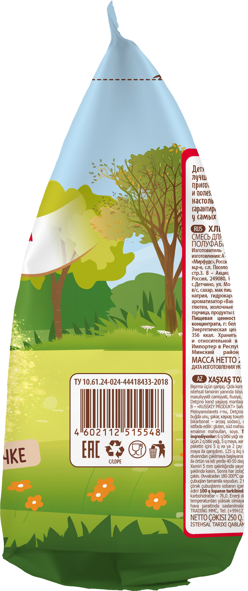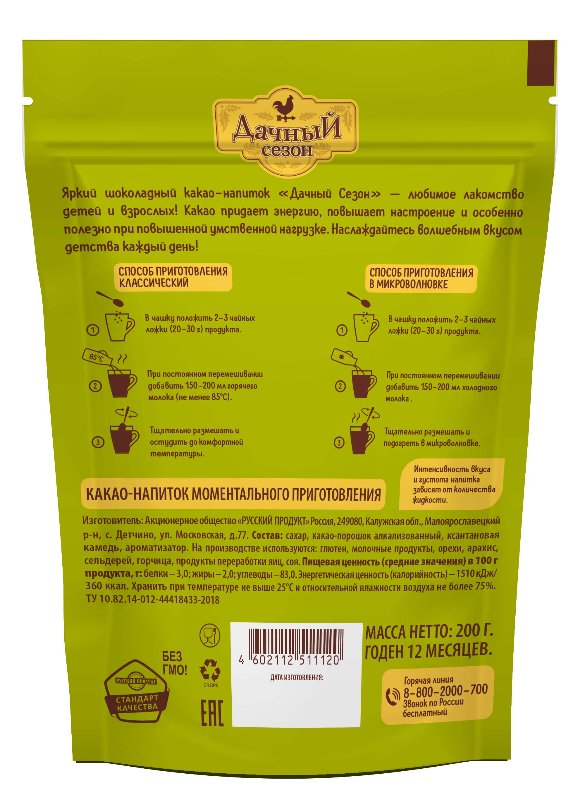Зали... | Ячмень, какао-порошок натуральный, овес, ароматизатор натура... | 3D Лицевая Оборотная Групповая уп | 0.0 | 0 | 0 | 0 | 24 |  | Хранить при температуре не выше 25°С и относительной влажнос... | 9 | шоу-бокс |  4602112518068 | 1,8 | 2,07 | 0,01597 | 165 | 395 | 245 | Слой | 126 | 14 | 756 | 84 | 6 | 14 ш/б*6 слоев | 1630 | АО Русский Продукт | 249080, Россия, Калужская обл, Малоярославецкий р-н, Детчино... | ЕАЭС N RU Д-RU.РА10.В.09920/24 | 01.11.2024 - 31.10.2027 | соответствует требованиям ТУ 10.83.12-010-44418433-2019 | Скачать | 2101309900 | 10.83.12.120 |