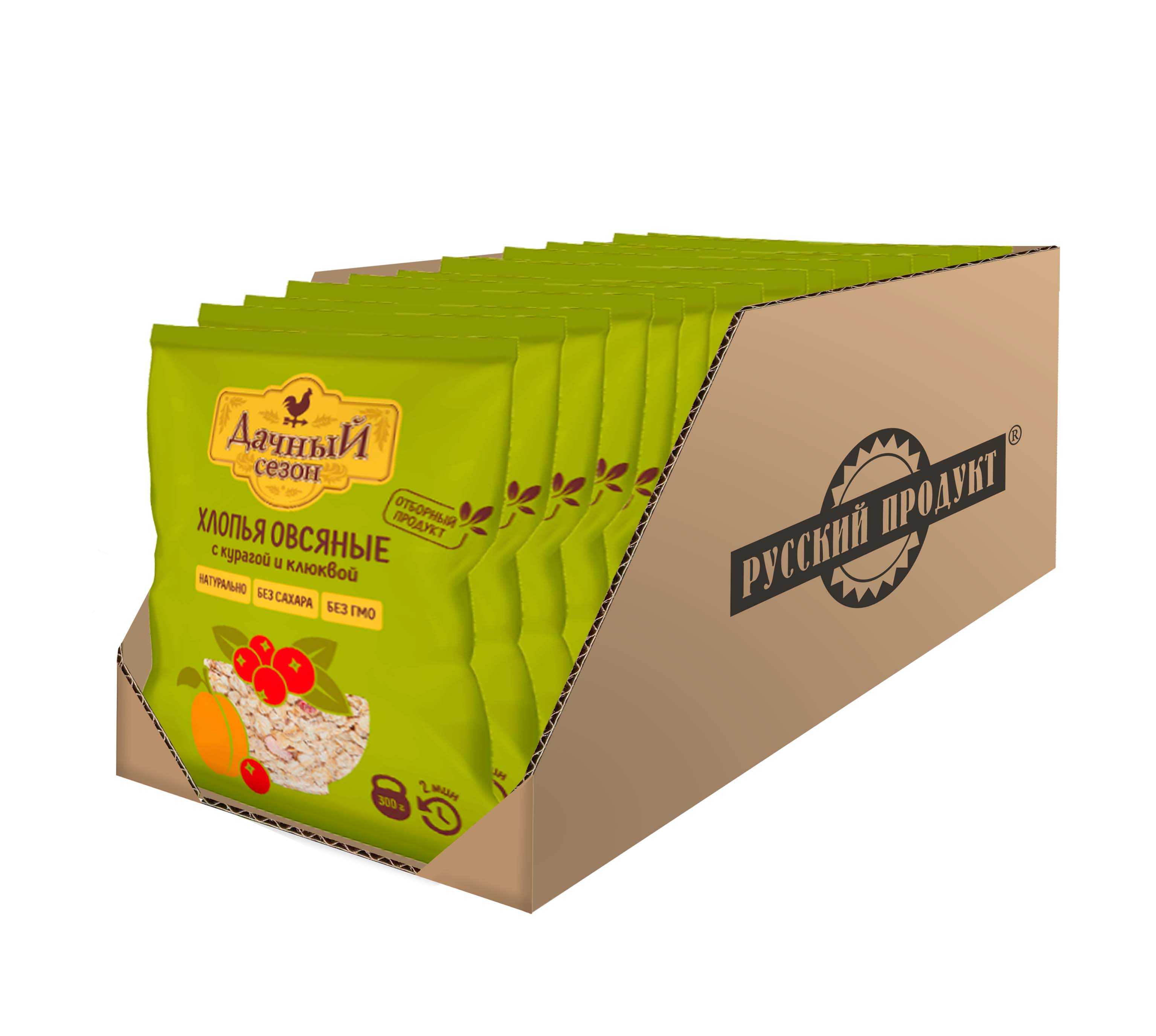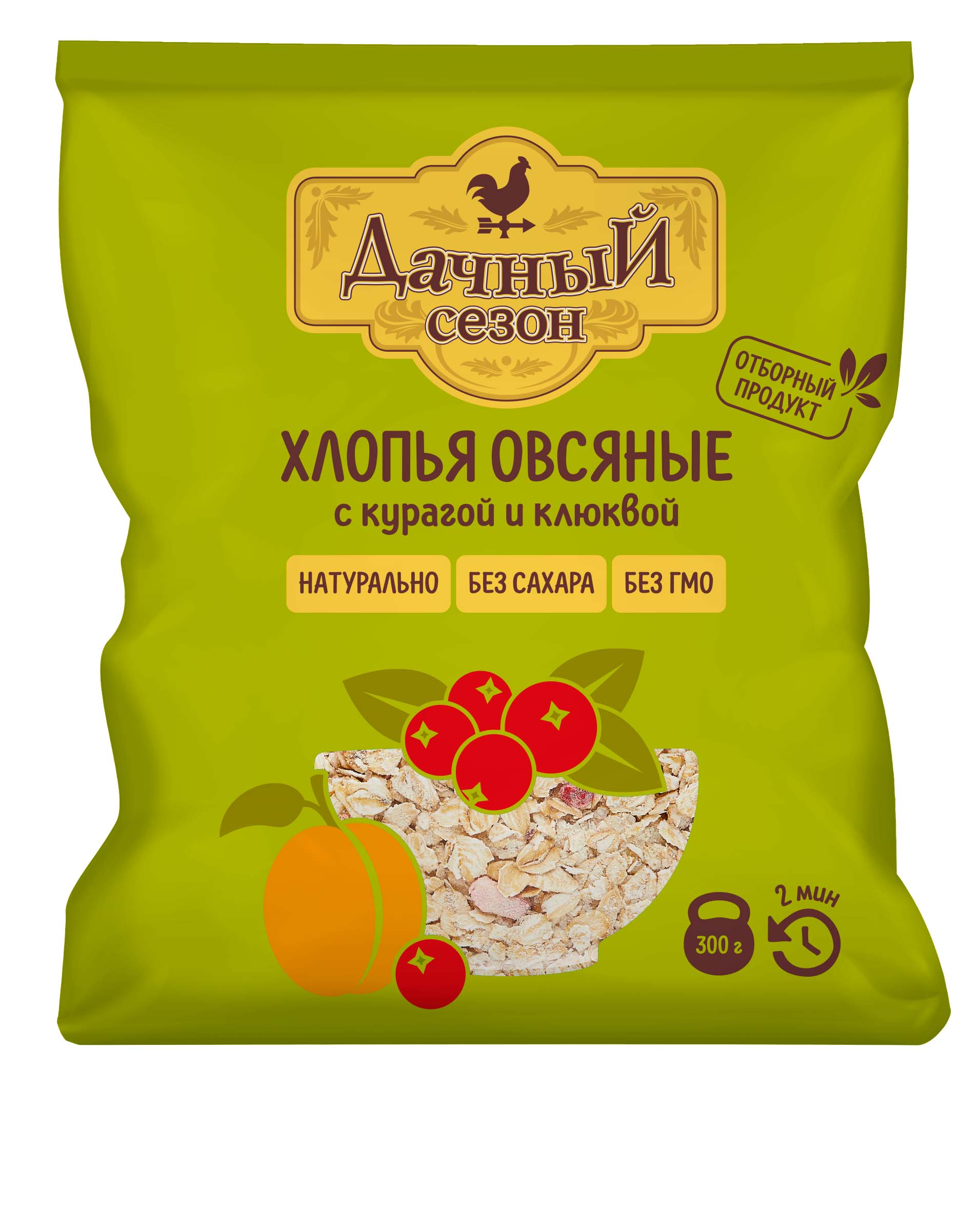 | Дачный Сезон | Бакалея | Каши варочные Хлопья овсяные/зерновые Дачный Сезон | Овсяные хлопья "Дачный сезон" с курагой и клюквой 300г/ 14 ш... | 2126607 | пачка |  4602112511922 | 300 | 0,00186 | 150 | 55 | 225 |  |  | 10 | "Дачный сезон" с курагой и клюквой - вкусная альтернатива кл... | 1. Залейте хлопья горячим молоком или водой в пропорции 1:2.... | Хлопья овсяные, клюква сушеная, абрикосы сушеные.