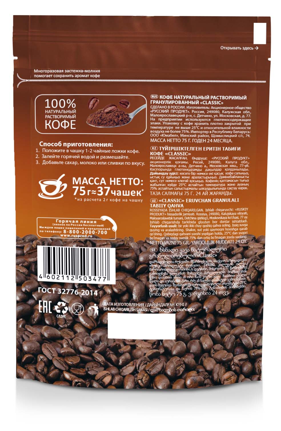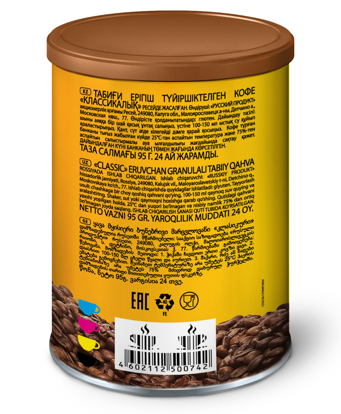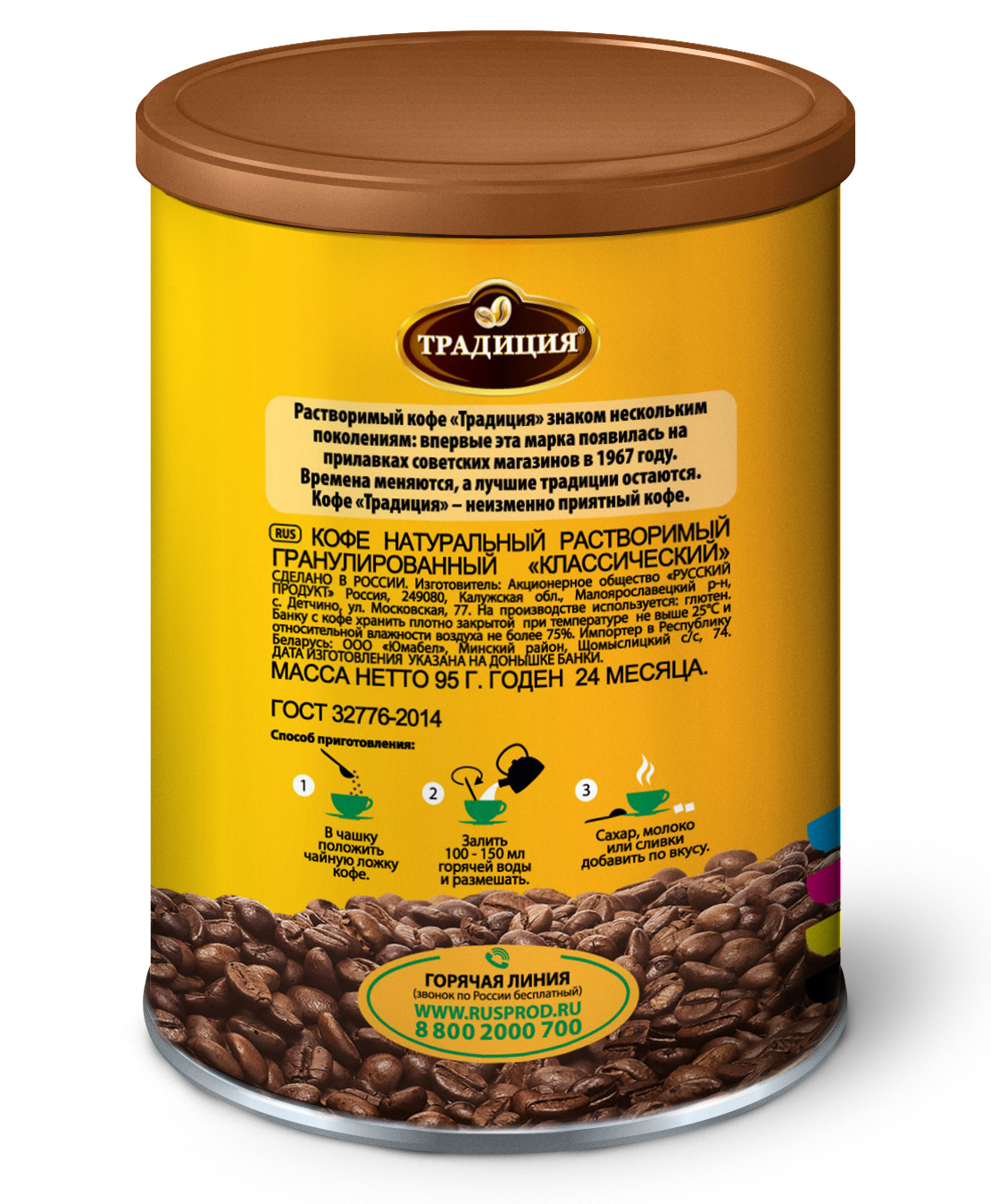 2.	Залейте горячей водой... | Кофе натуральный растворимый гранулированный. | 3D Лицевая Оборотная | 0.0 | 0 | 0 | 0 | 24 |  | Хранить при температуре не выше 25°С и относительной влажнос... | 12 | гофрокороб |  4602112503576 | 0,9 | 1,22 | 0,01126 | 225 | 385 | 130 | Слой | 120 | 10 | 1440 | 120 | 12 | 10 г/к х 12 слоев | 1710 | АО Русский Продукт | 249080, Россия, Калужская обл, Малоярославецкий р-н, Детчино... | ЕАЭС N RU Д-RU.РА10.В.50608/24 | 14.11.2024 - 13.11.2027 | соответствует требованиям ГОСТ 32776-2014 | Скачать | 2101110013 | 10.83.12.120 |