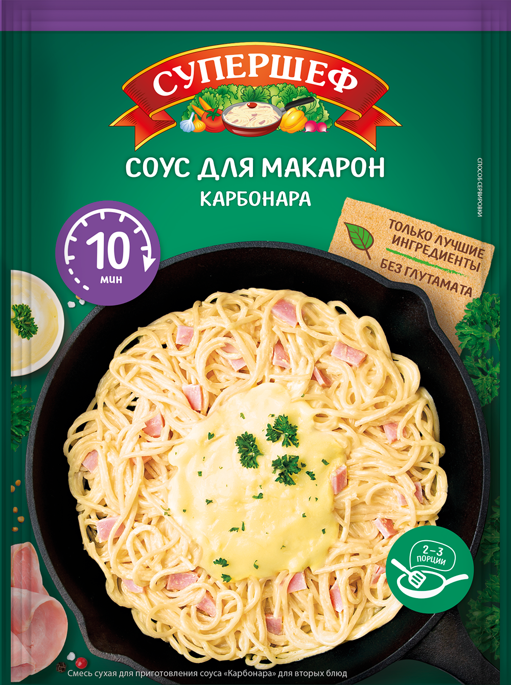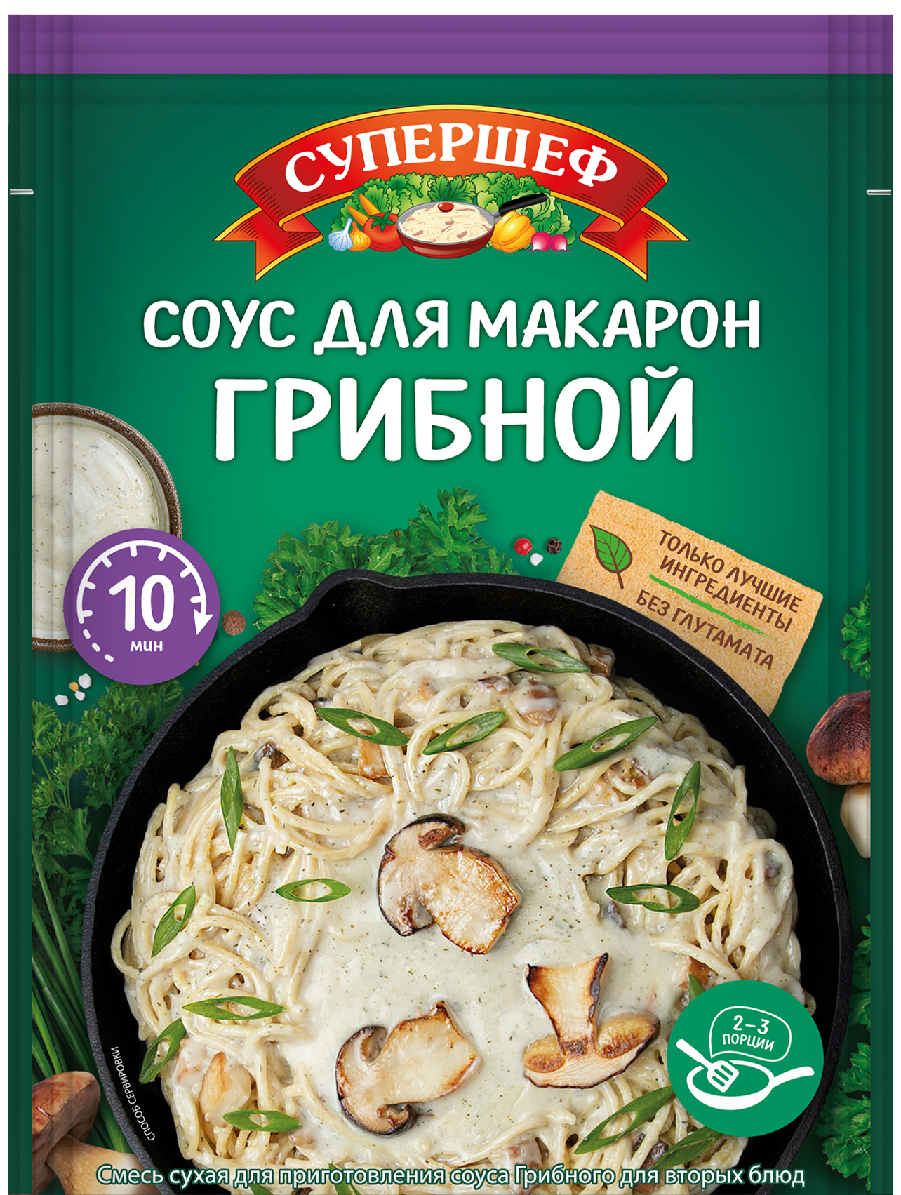 | Супершеф | Бакалея | Смеси сухие для приготовления соуса. | Смесь сухая для приготовления соуса для вторых блюд "Суперше... | 2700032 | пакет |  4602112512318 | 25 | 0,00019 | 120 | 10 | 160 | 15.05.2024 |  | 20 | Только лучшие ингредиенты