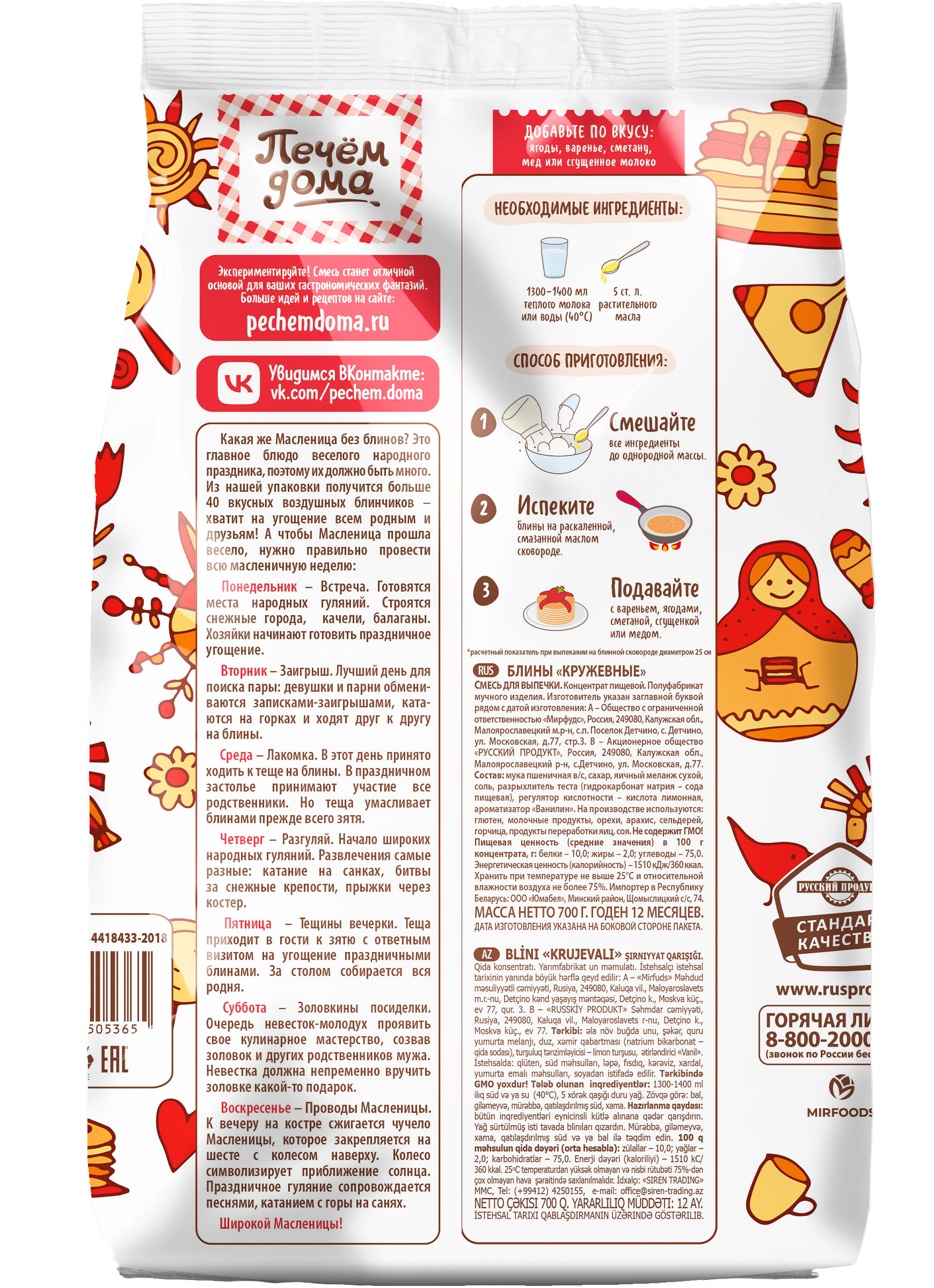 Бе... | ВАМ ПОНАДОБИТСЯ: 200 г - морепродукты или филе рыбы, 150- 20... | мука пшеничная в/с , соль, сахар, картофельные хлопья, крахм... | 3D Лицевая Оборотная | 240.0 | 5 | 1 | 54 | 12 |  | Хранить при температуре не выше 25°С и относительной влажнос... | 20 | шоу-бокс |  4602112512325 | 0,5 | 0,65 | 0,00453 | 130 | 205 | 170 | Слой | 680 | 34 | 6120 | 306 | 9 | 34 ш/б х 9 слоев | 1680 | ООО Мирфудс | 249080, Россия, Калужская обл, Малоярославецкий р-н, Детчино... | ЕАЭС N RU Д-RU.РА01.В.52820/25 | 30.01.2025 - 28.01.2030 | соответствует требованиям ТУ10.84.12-001-50948224-2021 | Скачать | 2103909009 | 10.84.12.150 |