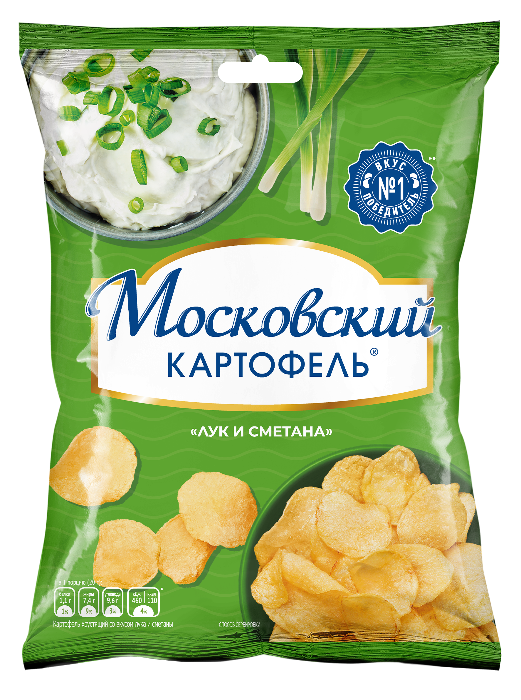 | Московский Картофель | Снеки | Московский картофель: Средняя фасовка | Картофель Московский хруст. со вкусом лука и сметаны 60г/12 ... | 2601995 | Пакет-подушка |  4602112516040 | 60 | 0,00264 | 163 | 60 | 270 |  |  | 20 | Поджаренный хрустящий картофель, нежная сметана и ароматный ... | Готовый продукт.