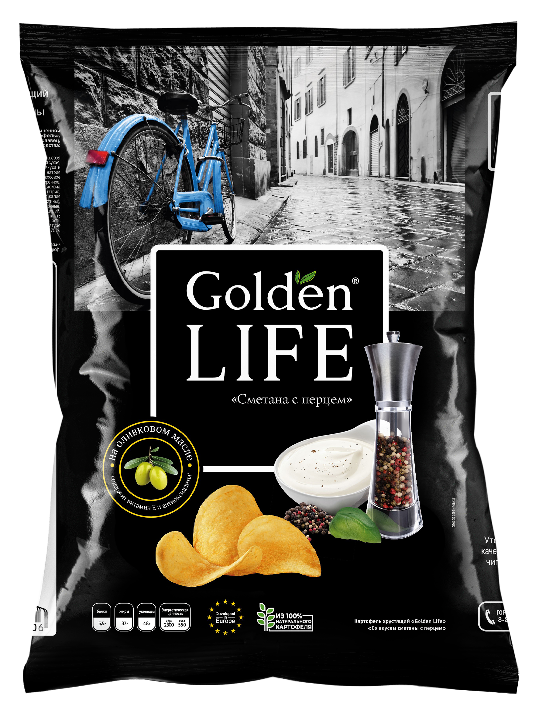 | Golden Life | Снеки | Golden Life: Средняя фасовка. Картофельные чипсы | Картофель хруст. Golden Life "Со вкусом Сметаны с перцем" 90... | 2602008 | Пакет-подушка |  4602112513506 | 90 | 0,00284 | 163 | 60 | 290 |  |  | 20 | Мягкий вкус сметаны и пикантная острота перца - нежность и х... | Готовый продукт. | картофель, масло растительное, комплексная пищевая добавка "... | 3D Лицевая Оборотная | 550.0 | 5.5 | 37 | 48 | 9 |  | Хранить при температуре не выше 25°С и относительной влажнос... | 12 | гофрокороб |  4602112513513 | 1,08 | 1,48 | 0,02442 | 295 | 385 | 215 | 1 паллета | 96 | 8 | 672 | 56 | 7 | 8 г/к х 7 слоев | 1655 | ООО Москарт | 107143, Россия, Москва г, ул. Пермская вл. 1 | ЕАЭС N RU Д-RU.РА04.В.01255/24 | 03.05.2024 - 02.05.2027 | соответствует требованиям ТУ10.31.14-001-74532057-2018 | Скачать | 2005202000 | 10.31.14.000 |